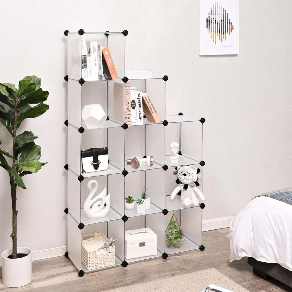 Sokoldalú, könnyen összeállítható moduláris tárolórendszer átlátszó fehér panelekkel, amely tökéletes megoldást nyújt a rendszerezett tároláshoz otthonában vagy irodájában.