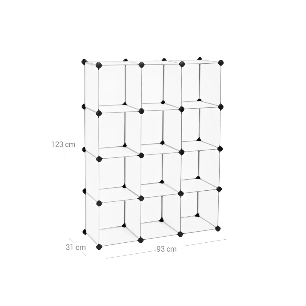 SONGMICS Moduláris Tárolószekrény Átlátszó Fehér Műanyag Kockákból