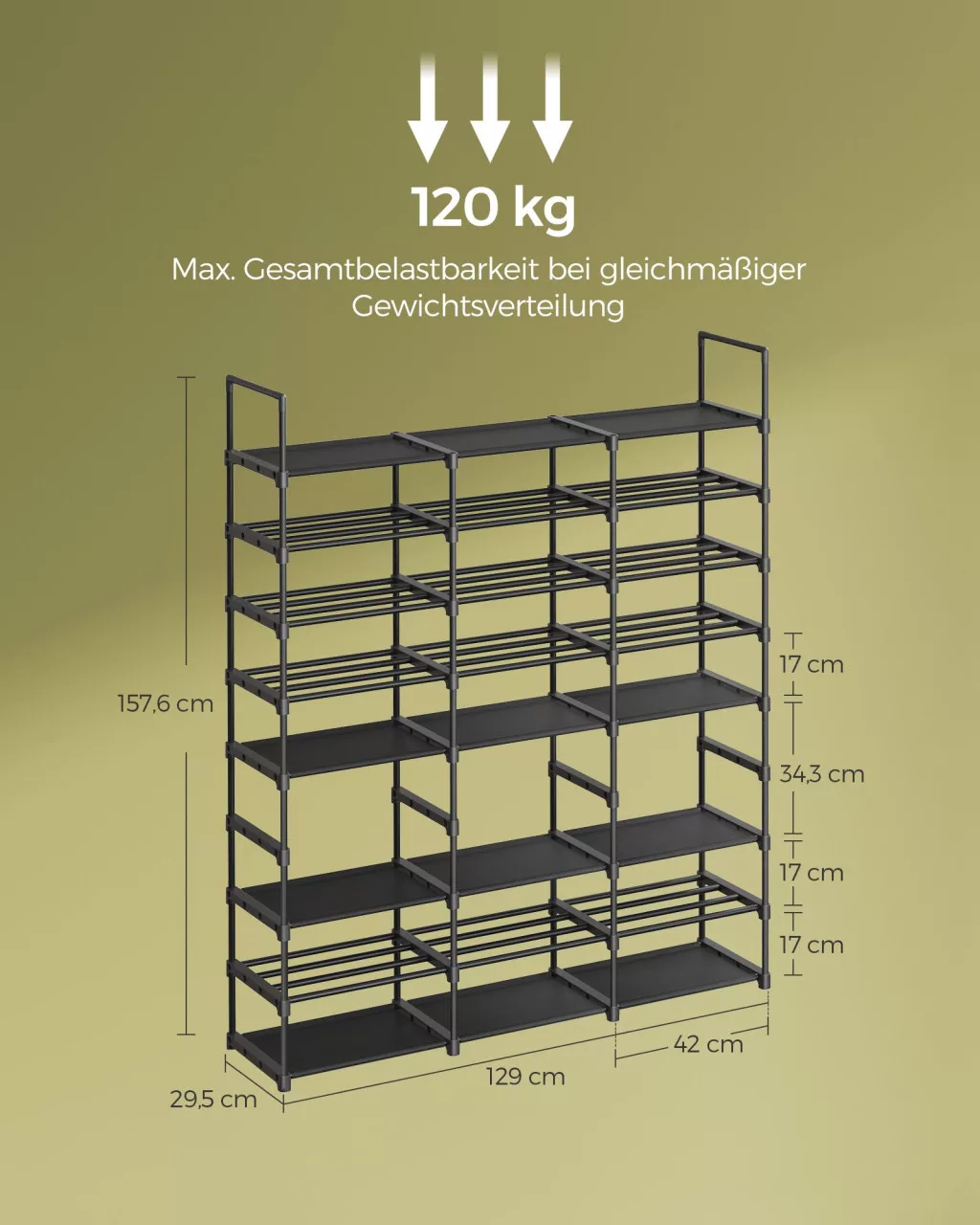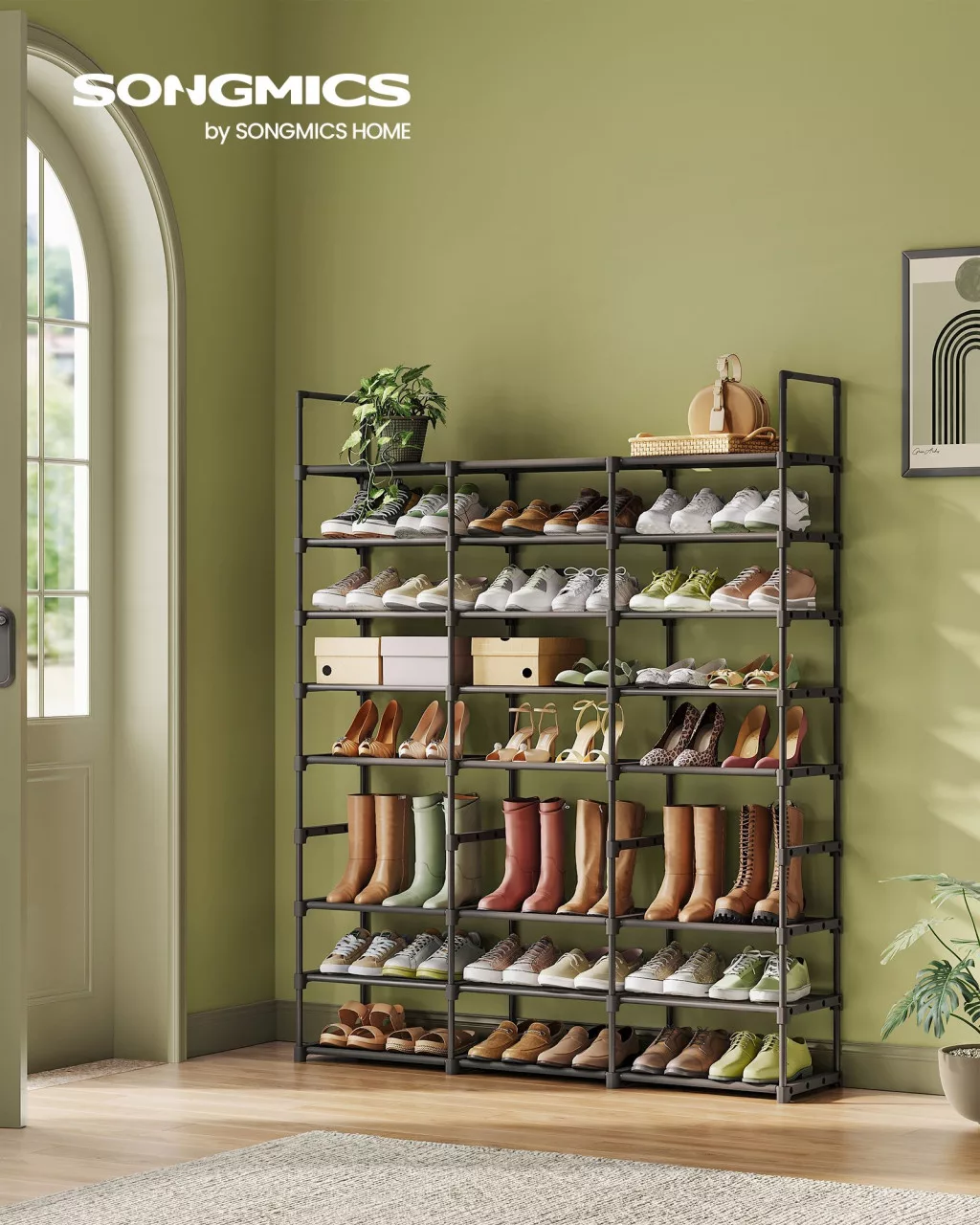 SONGMICS Nagy Méretű 8-Szintes Acél Cipőtároló Állvány Fekete