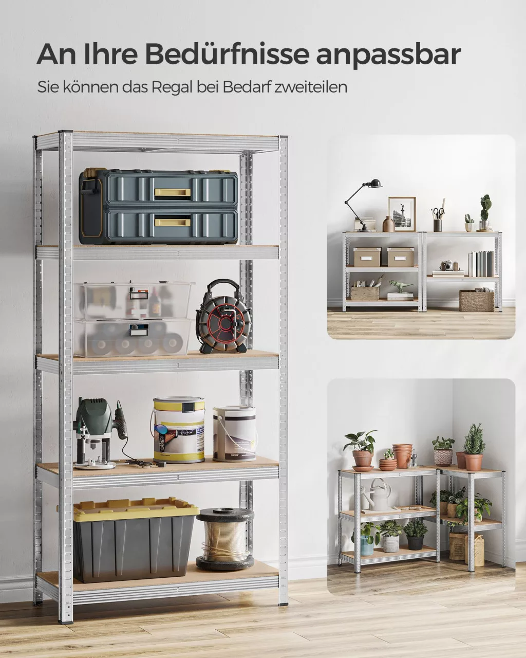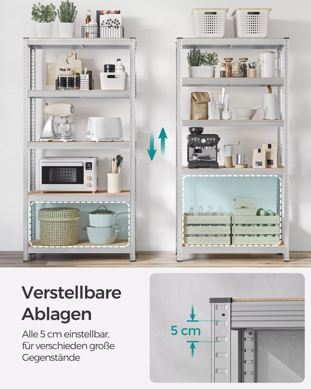 SONGMICS Nagy Teherbírású 5-Szintes Tárolóállvány Ezüst Acél Vázzal