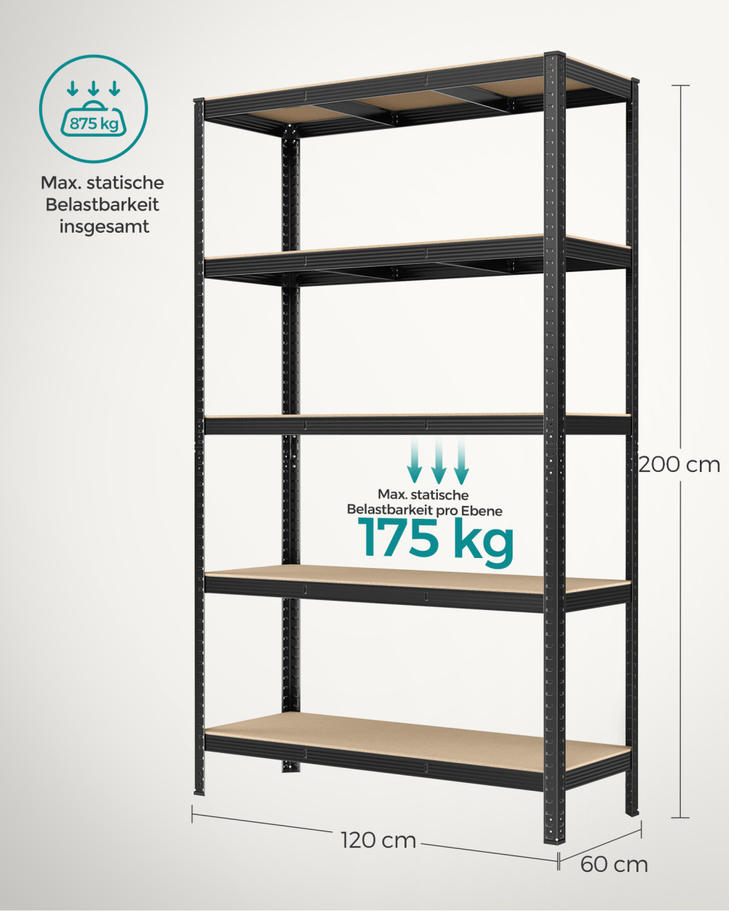 • Extrém teherbírás: 875 kg összterhelhetőség, polconként 175 kg