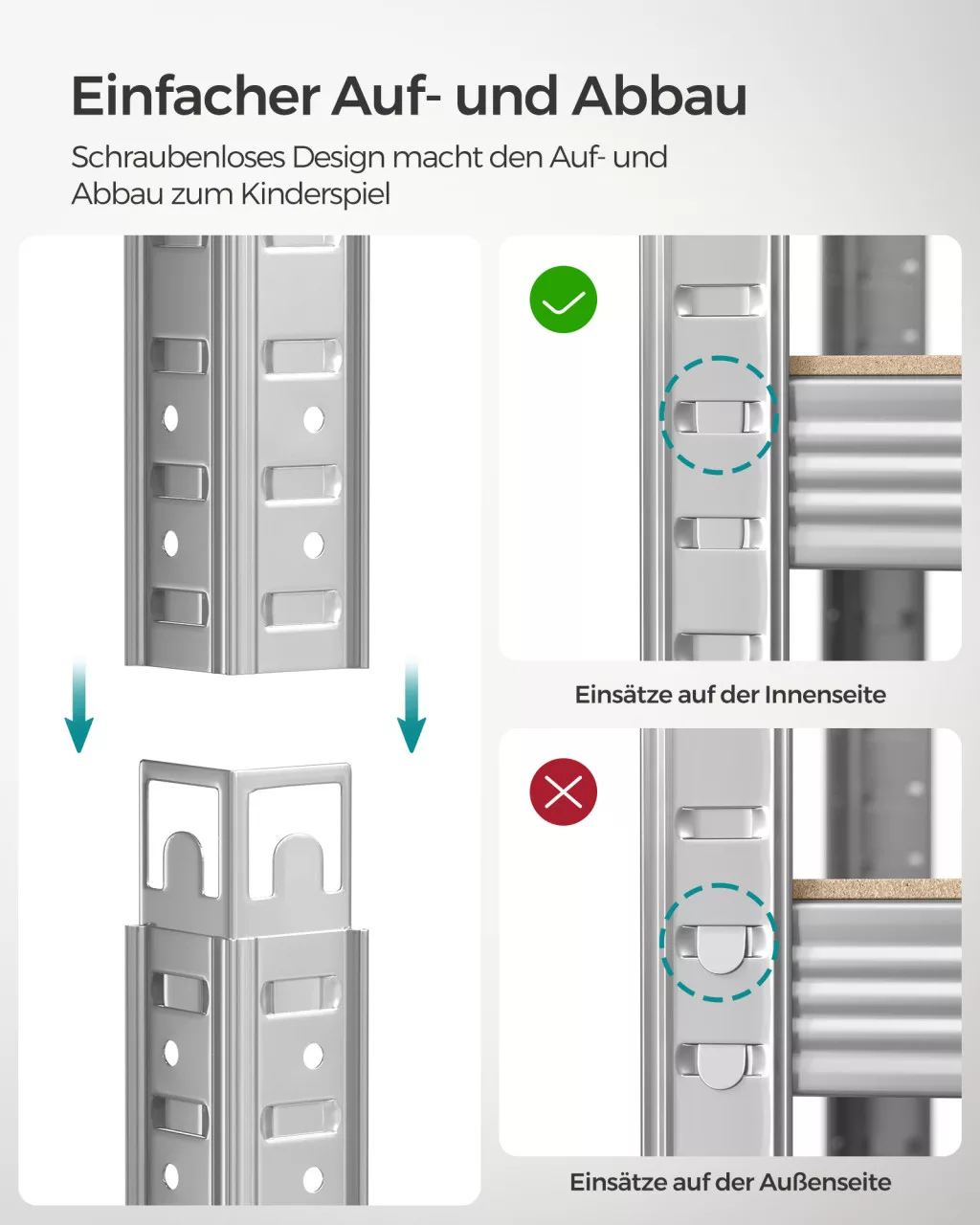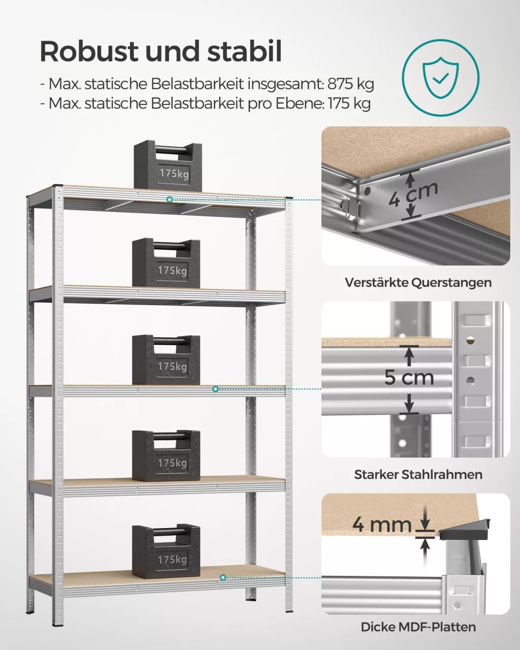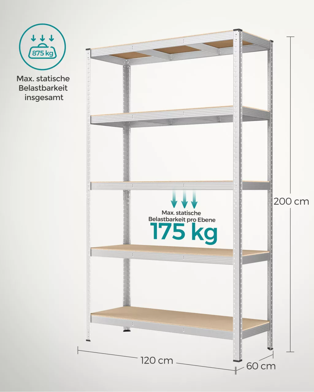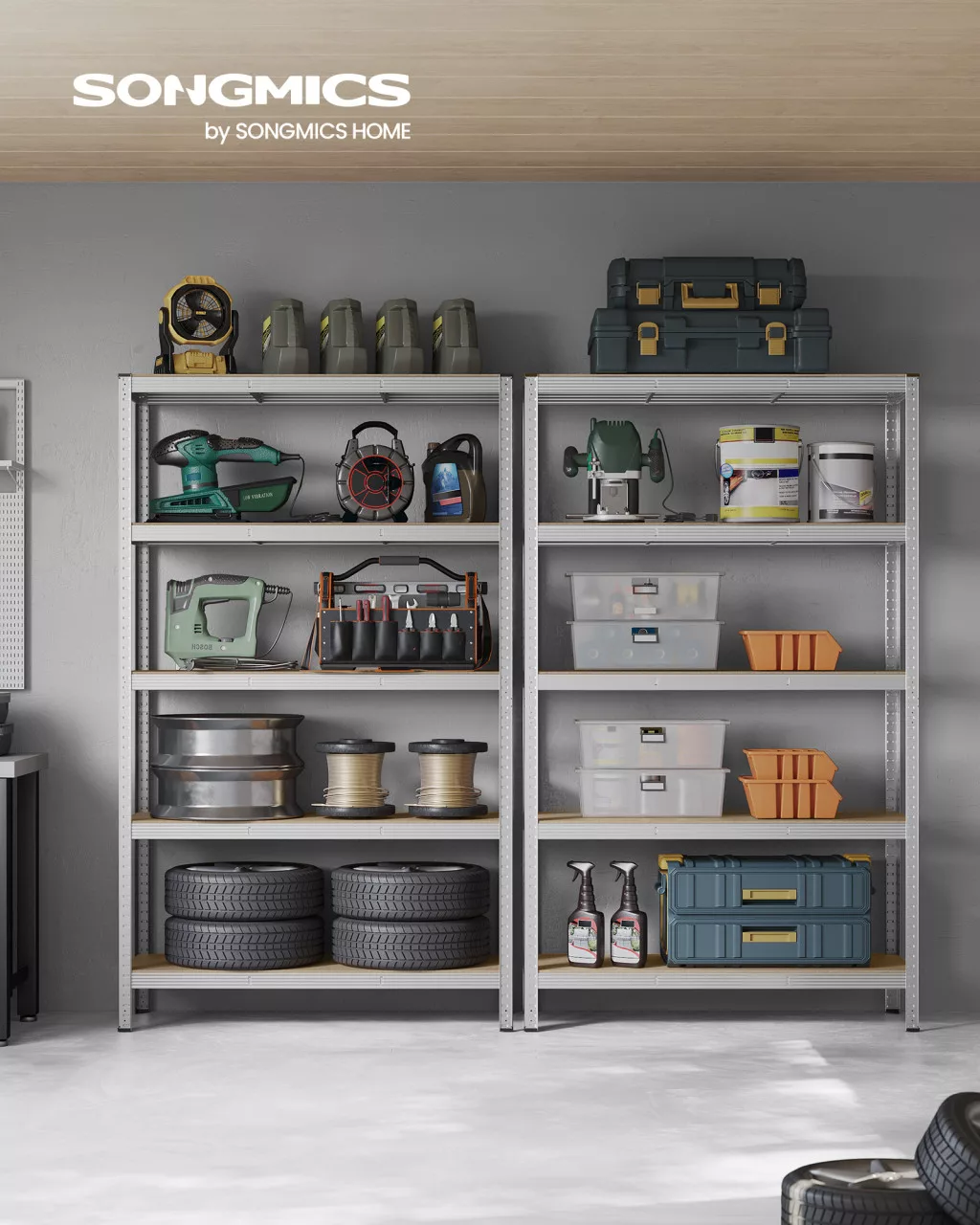 SONGMICS Nagy Teherbírású Acél Polcrendszer Ezüst 875 kg