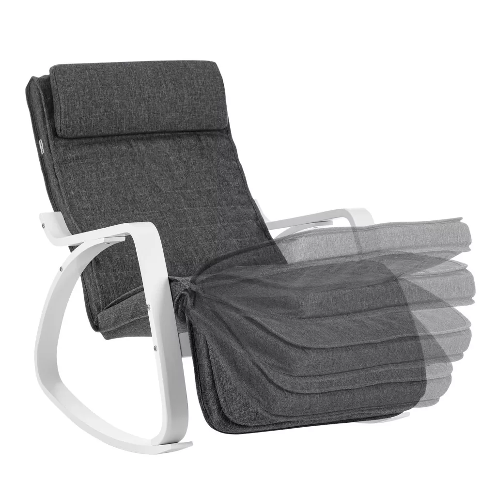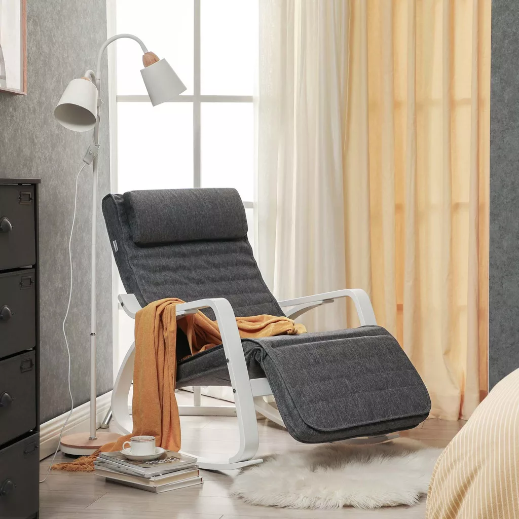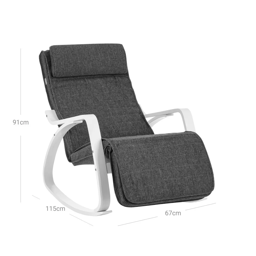 SONGMICS Nyírfa Hintaszék Állítható Lábtartóval Sötétszürke Len Huzattal
