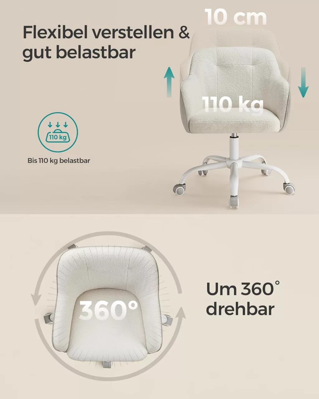 SONGMICS OBG019W01 Ergonomikus Forgószék Sherpa Szövettel Krémfehér