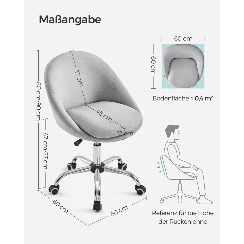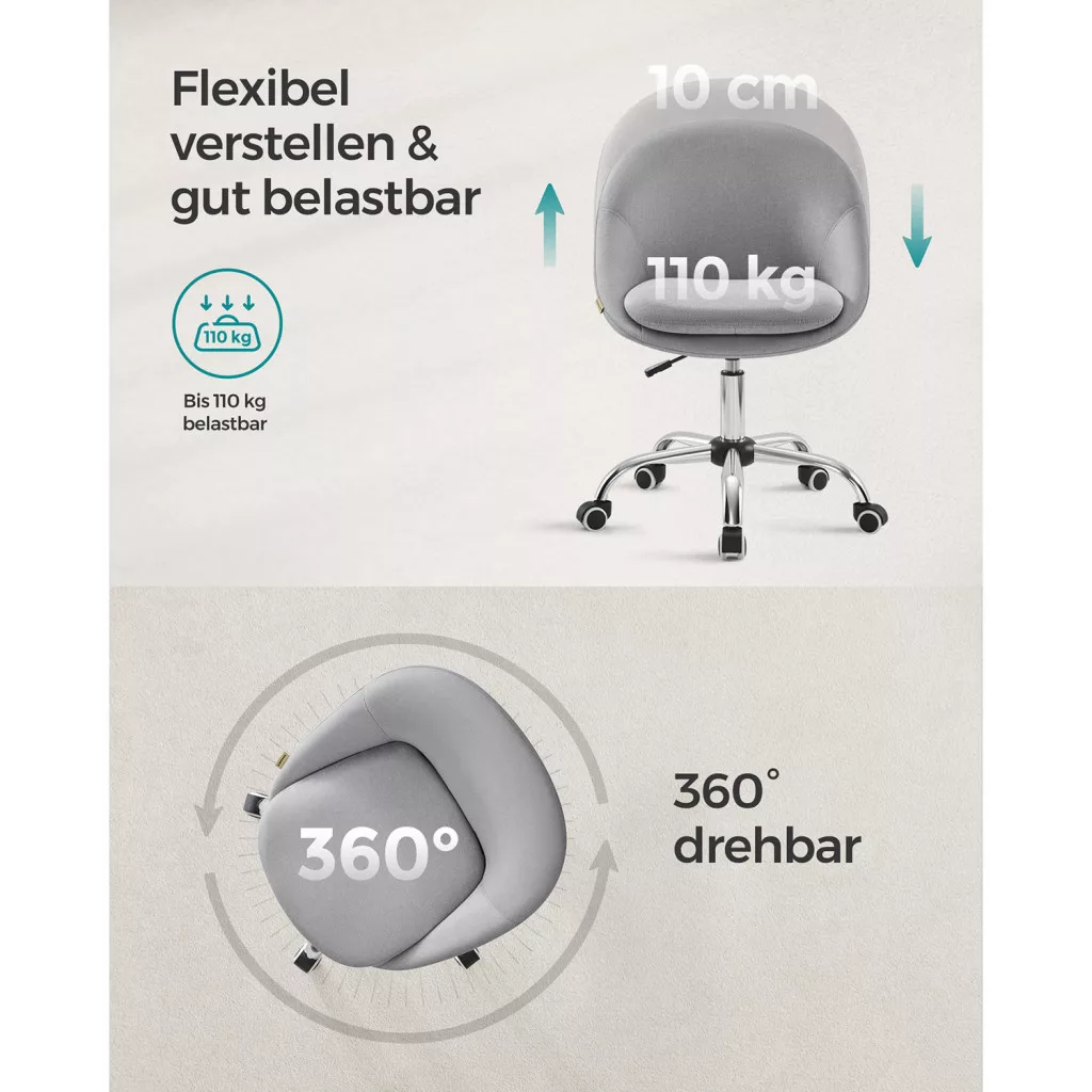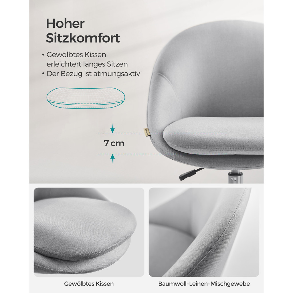 SONGMICS OBG020G01 Forgószék Íróasztalhoz Szürke Párnázott Magasságállítható