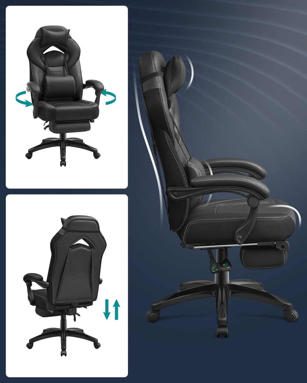 SONGMICS OBG077B01 Ergonomikus Gamer Szék Lábtartóval Fekete