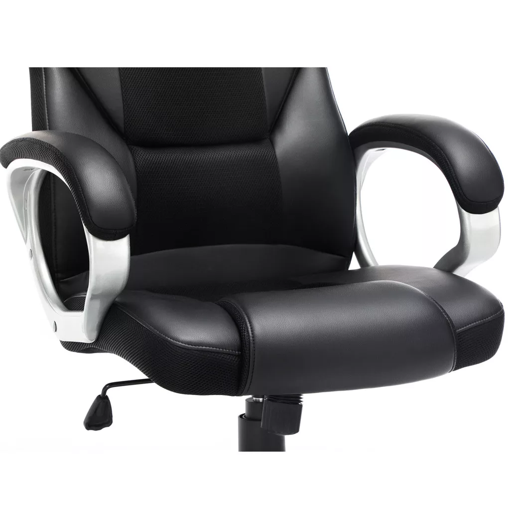 SONGMICS OBG22B ergonomikus forgószék PU bőr fekete görgőkkel