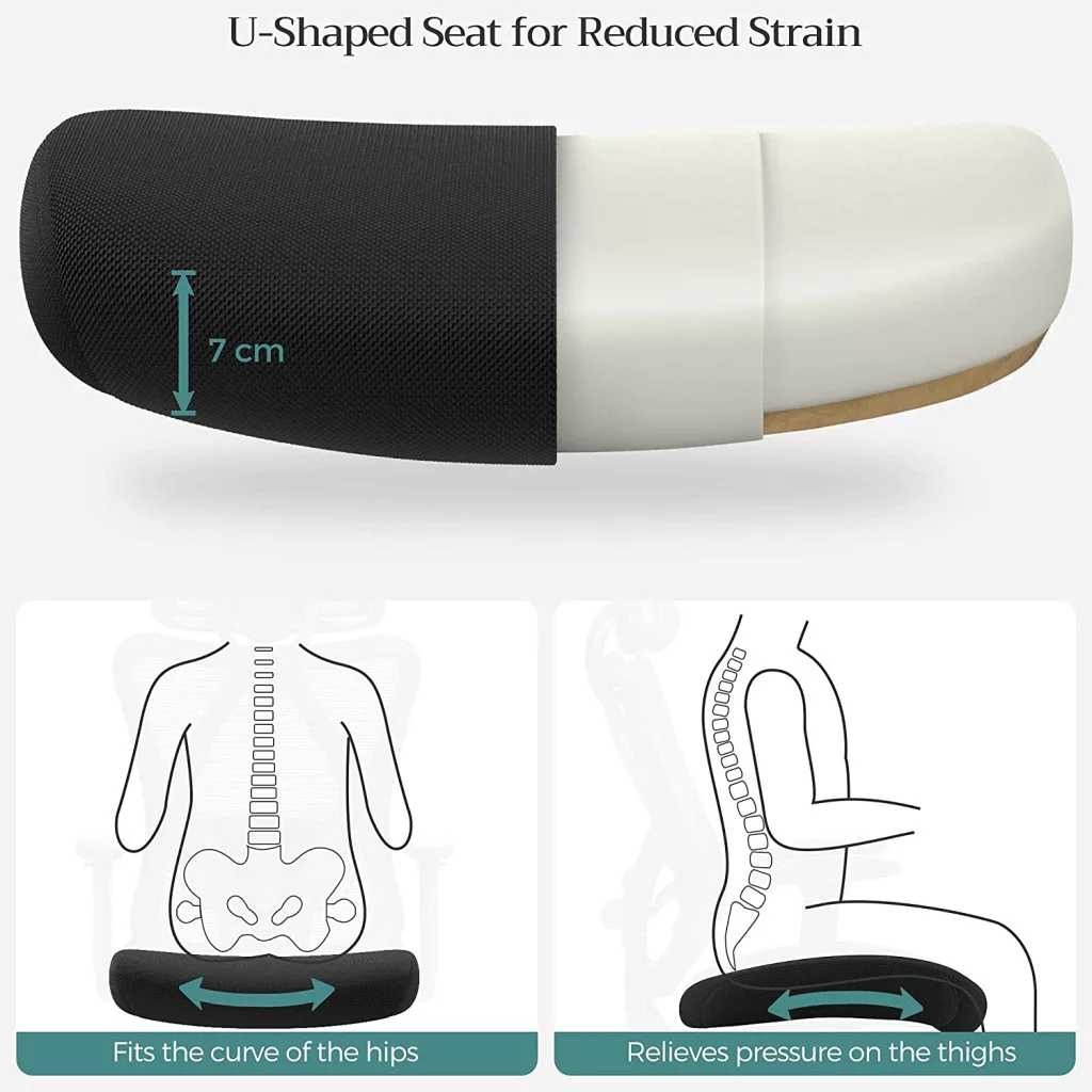 • Lélegző hálós háttámla és U-alakú ülőpárna: optimális légáramlás és kényelem hosszú órákig tartó ülés esetén is, megelőzve a fáradtságot