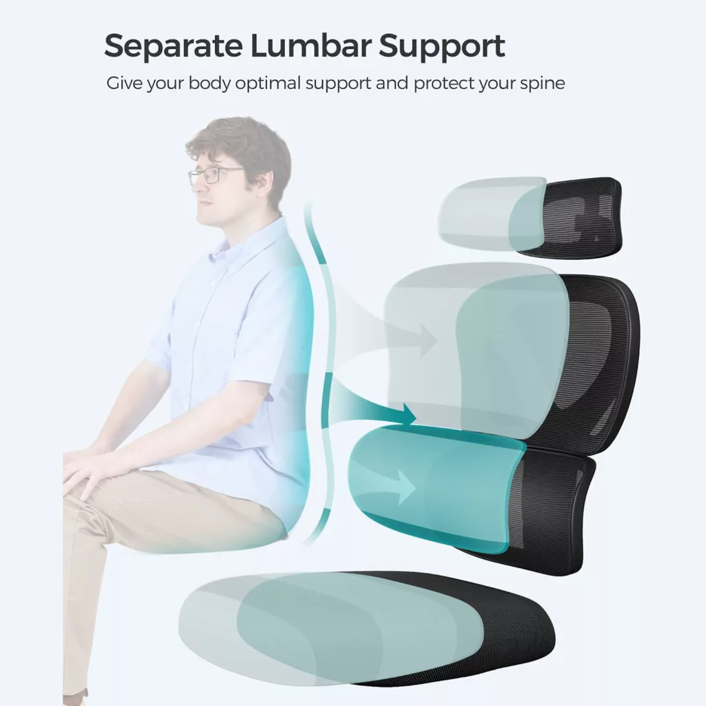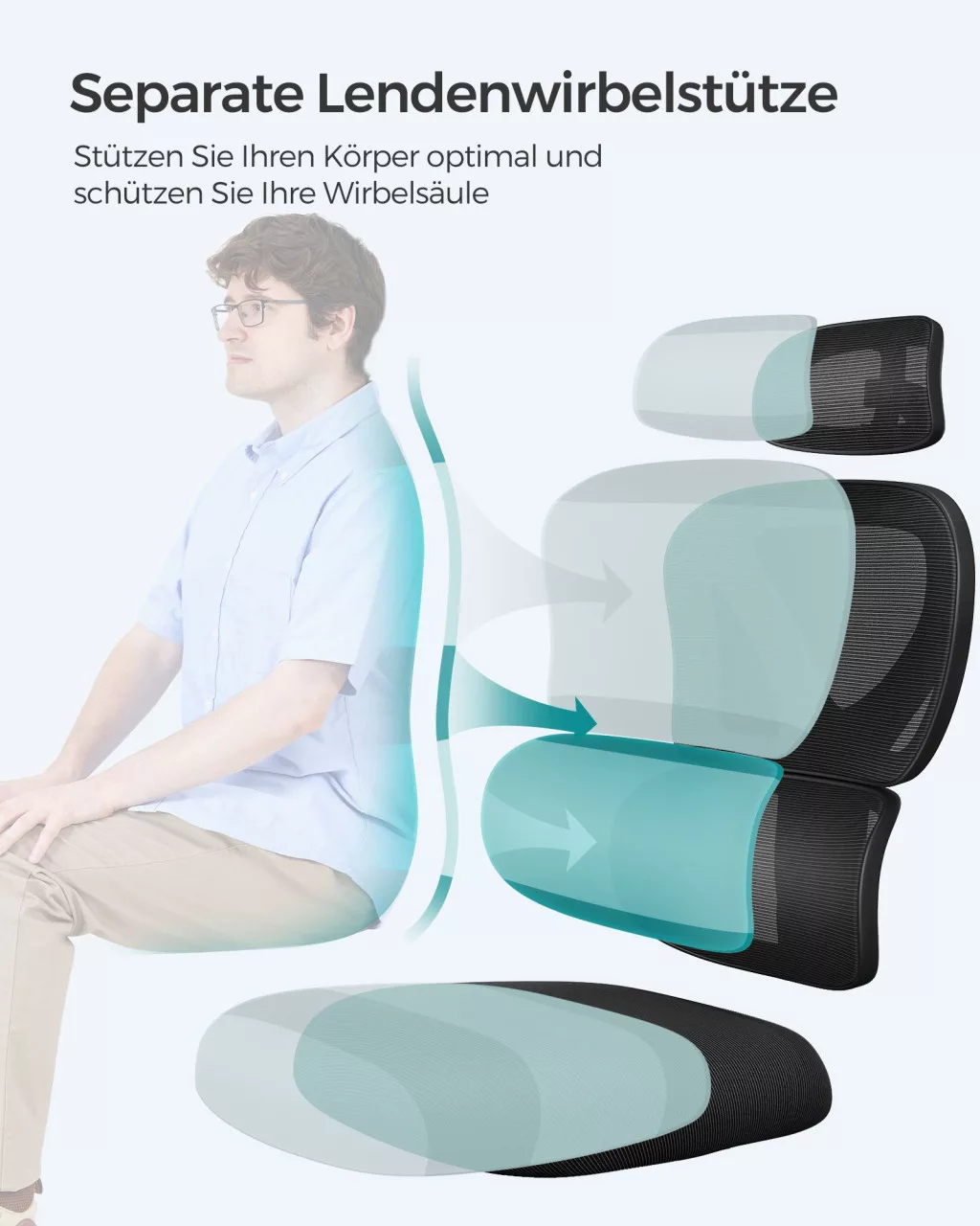 • Ergonomikus kialakítás különálló deréktámasszal a tökéletes gerincvédelemért