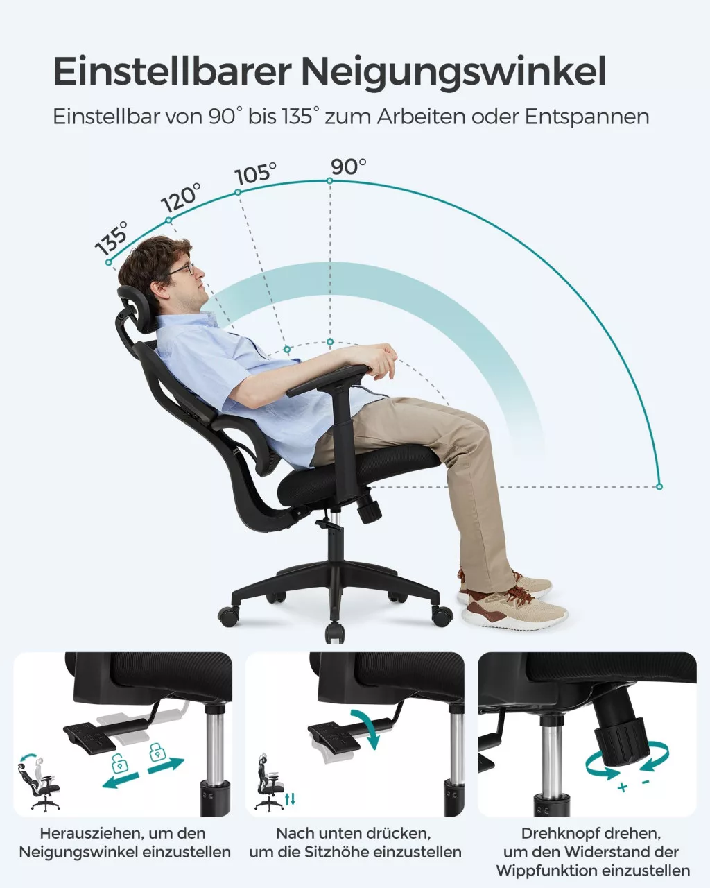 • Állítható háttámla: 90°, 105°, 120° és 135°-os döntési szögek a tökéletes pozícióért