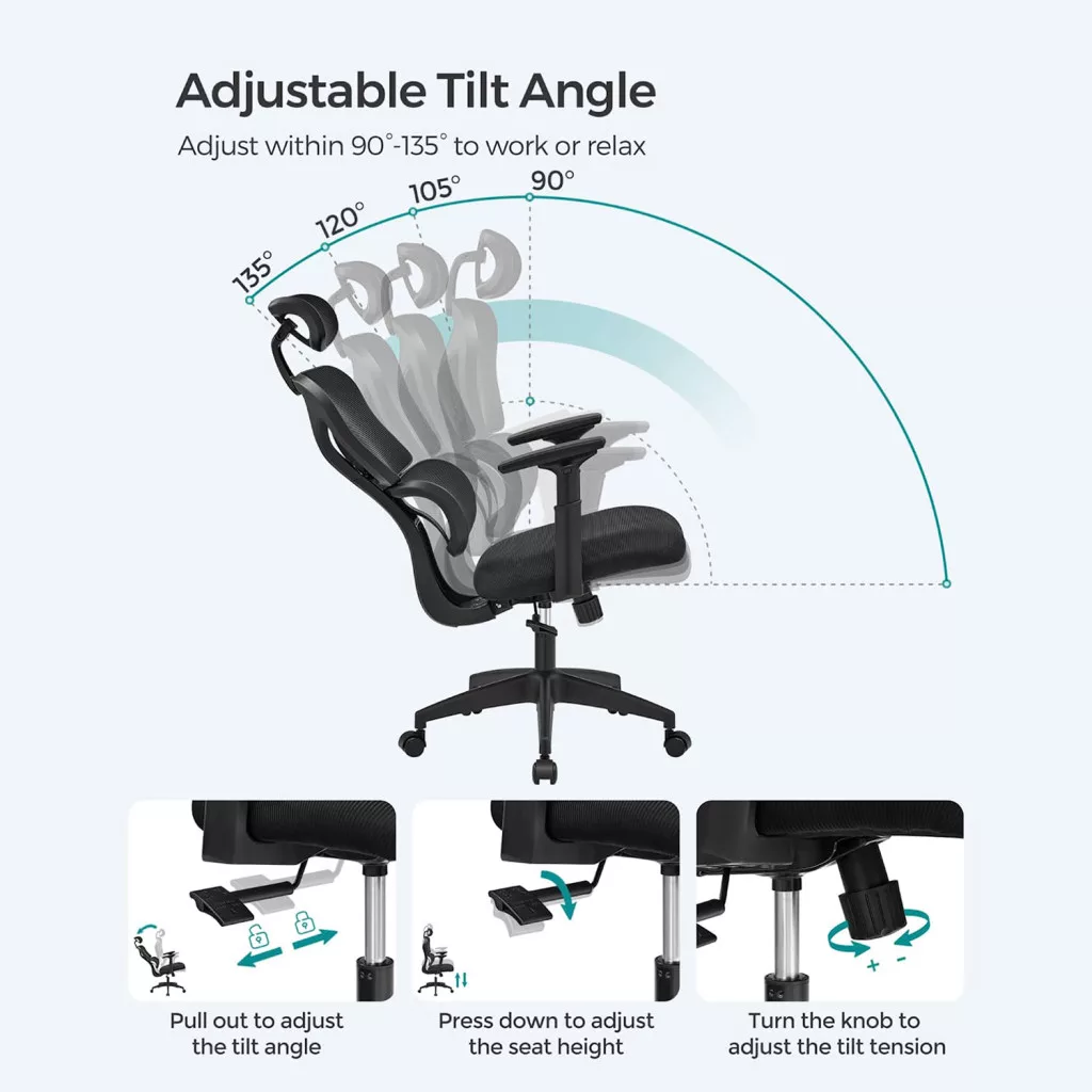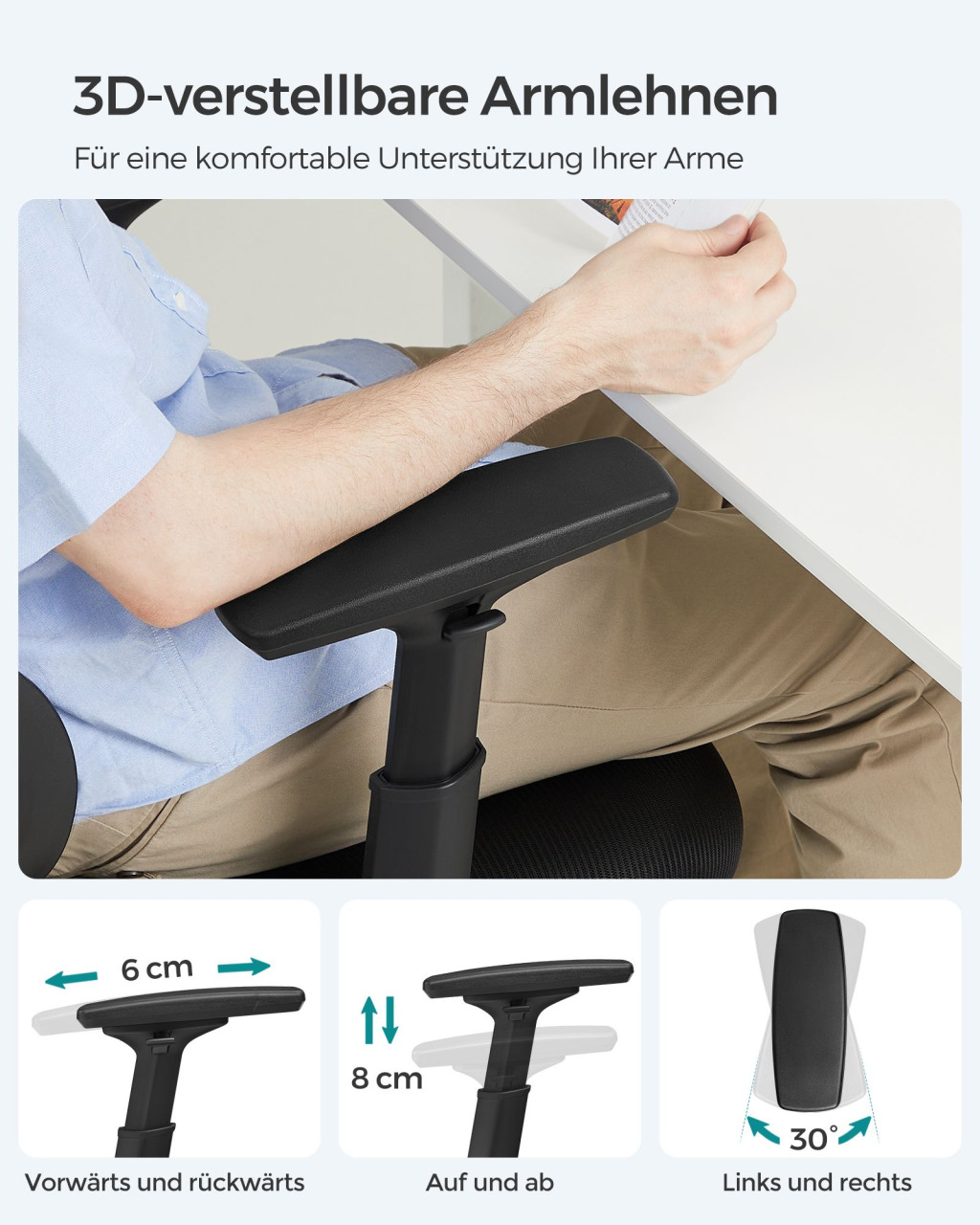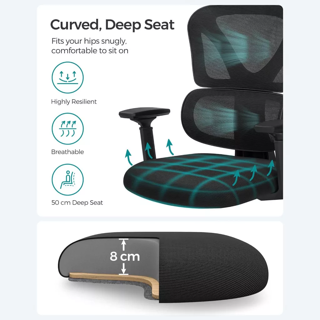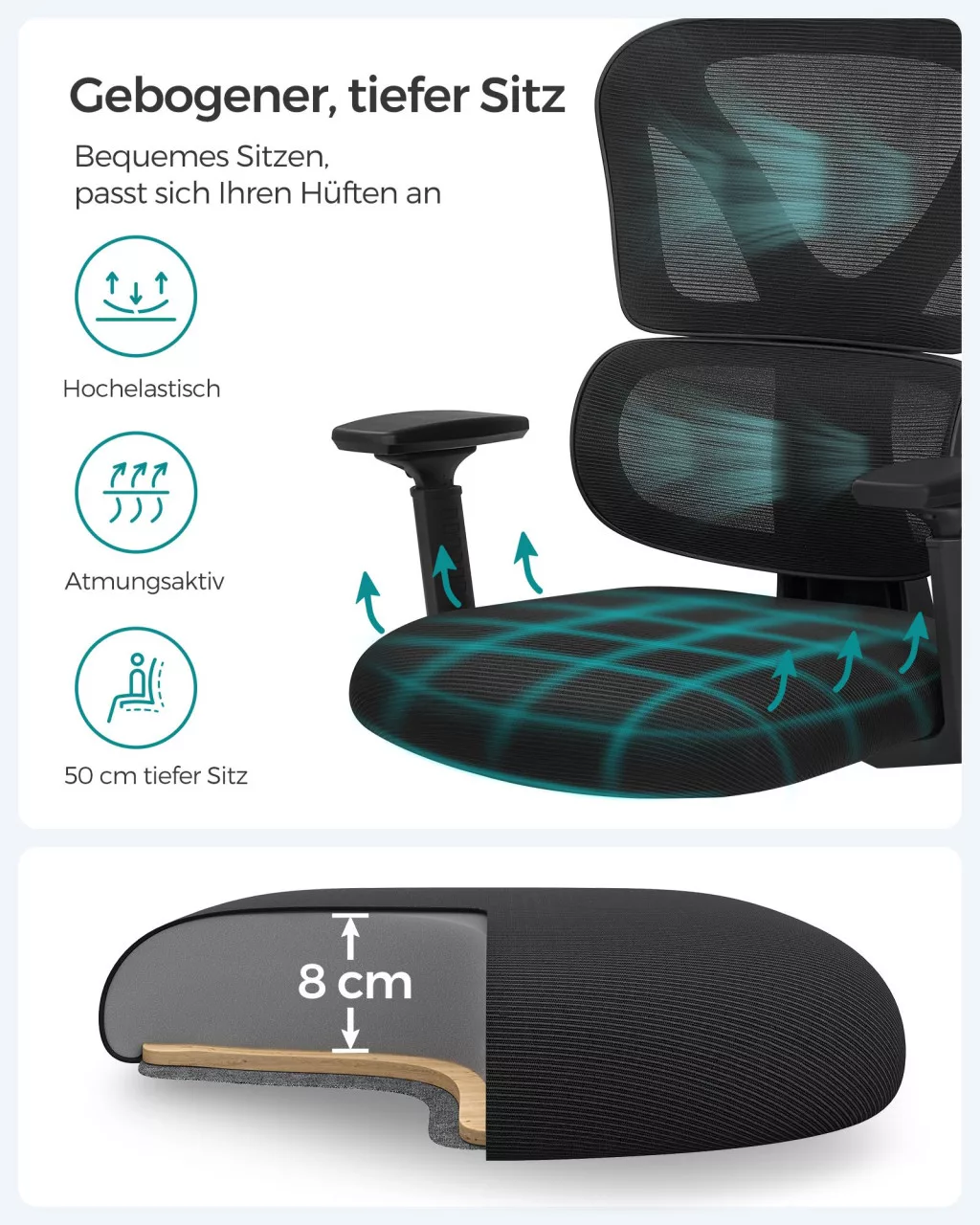 SONGMICS OBN064B01 Ergonomikus Hálós Irodai Szék Állítható Deréktámasszal Fekete