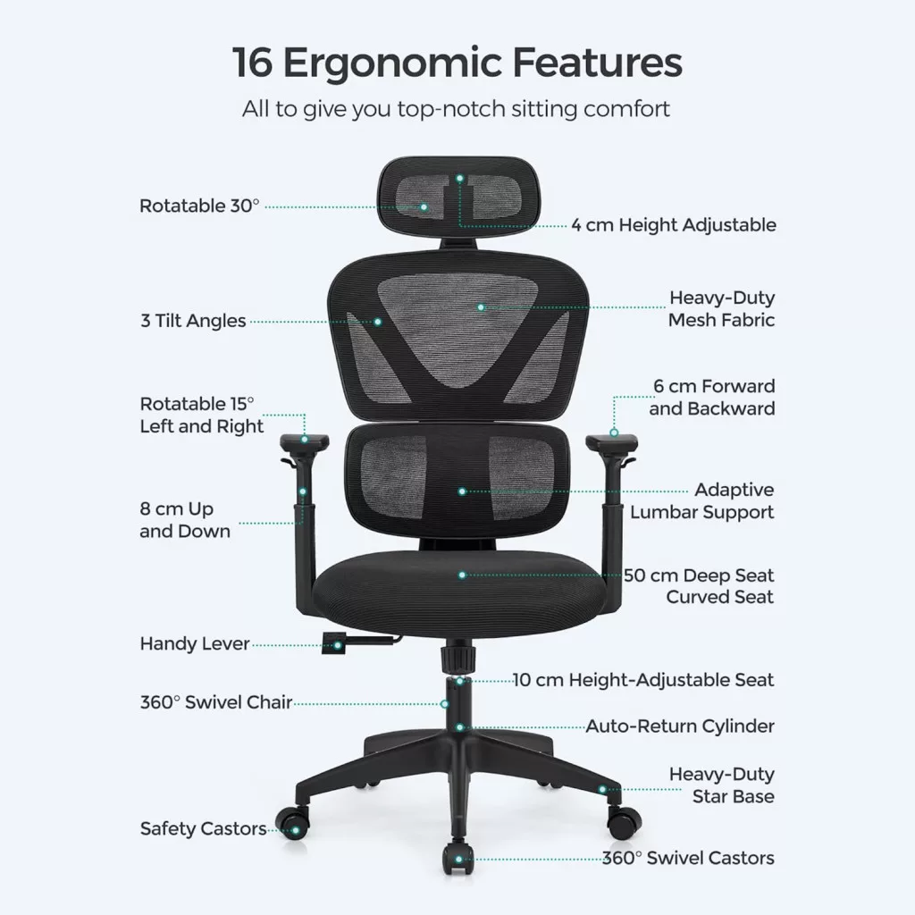 Ez a prémium irodai szék egyesíti a modern dizájnt és az ergonomikus kialakítást. A különálló deréktámasz és az S-alakú háttámla tökéletesen illeszkedik a test természetes görbületeihez, míg a légáteresztő hálós kialakítás kellemes hőmérsékletet biztosít egész nap.