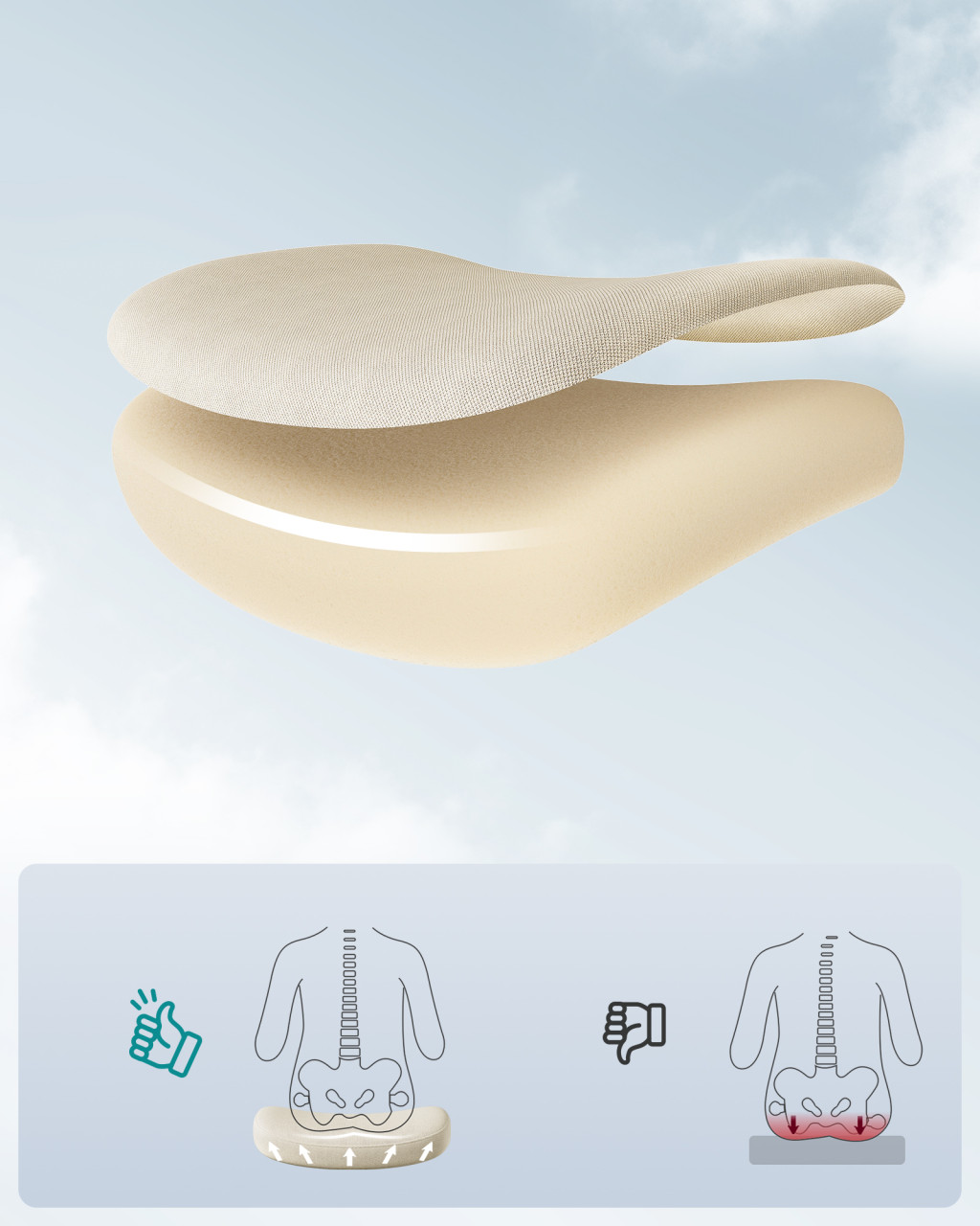 • Hosszantartó kényelem: A 6 cm vastag, nagy sűrűségű habszivacs ülőpárna formáját megőrzi még órákon át tartó ülés esetén is, ergonomikus kialakítása pedig csökkenti a combokra nehezedő nyomást