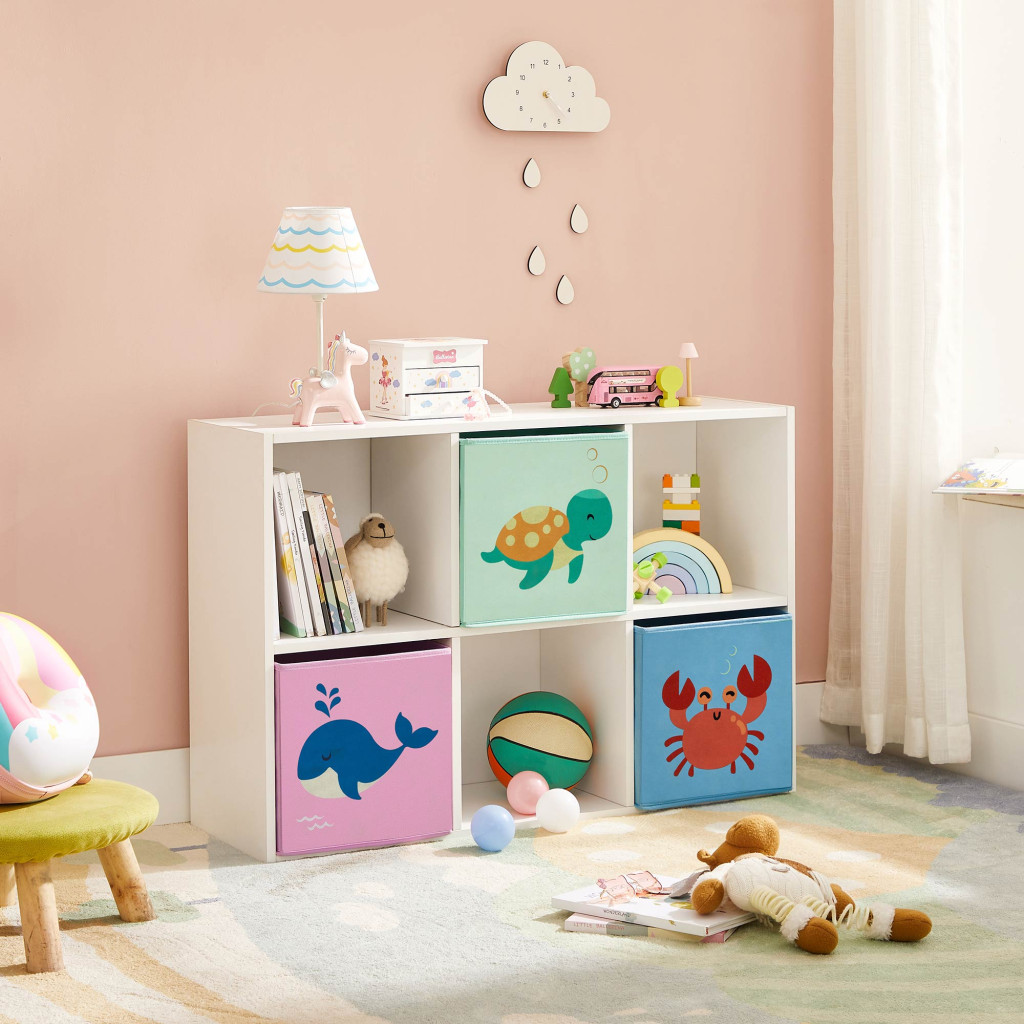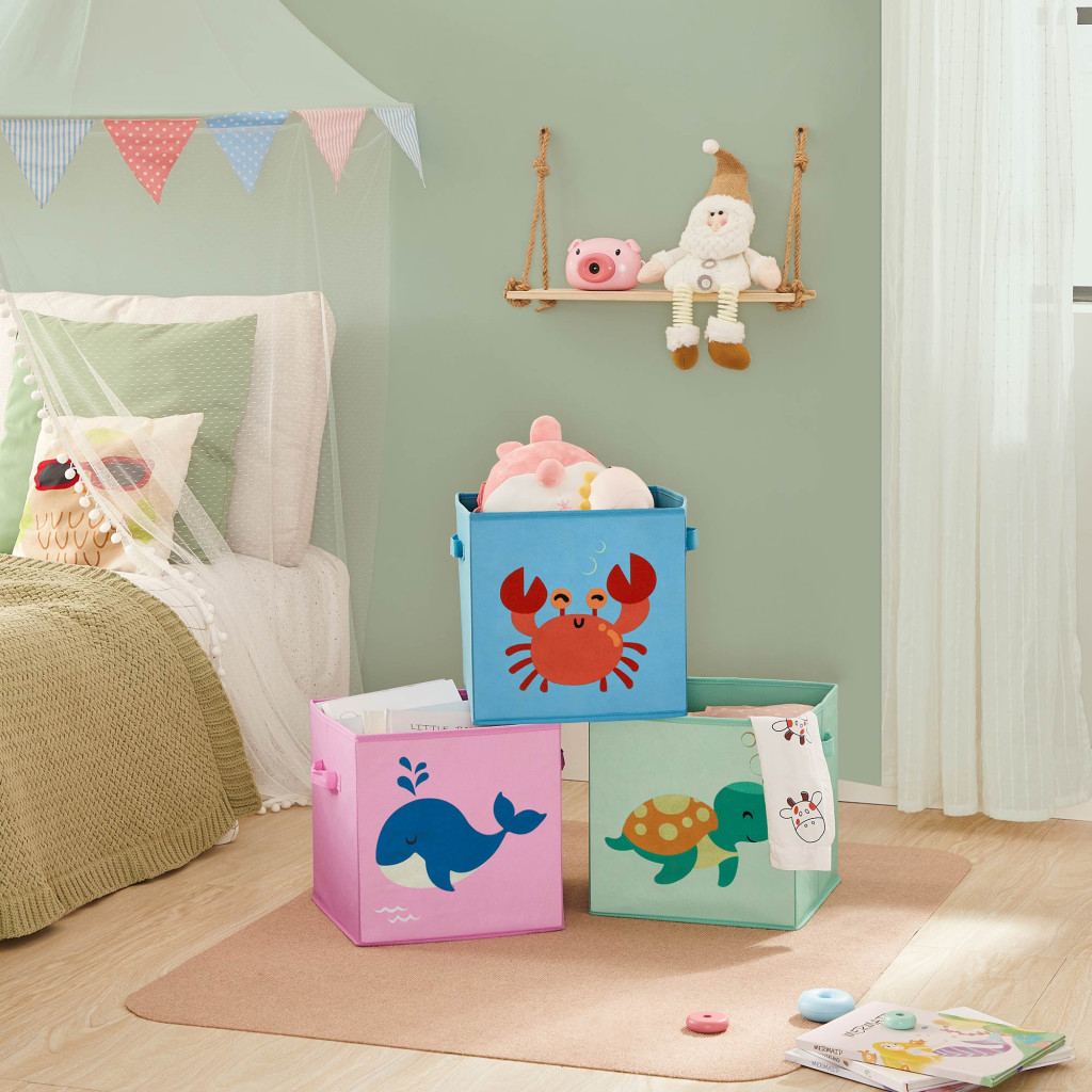 SONGMICS Óceán Témájú Tárolódoboz Szett Gyerekeknek Fogantyúval, Kék-Zöld-Rózsaszín