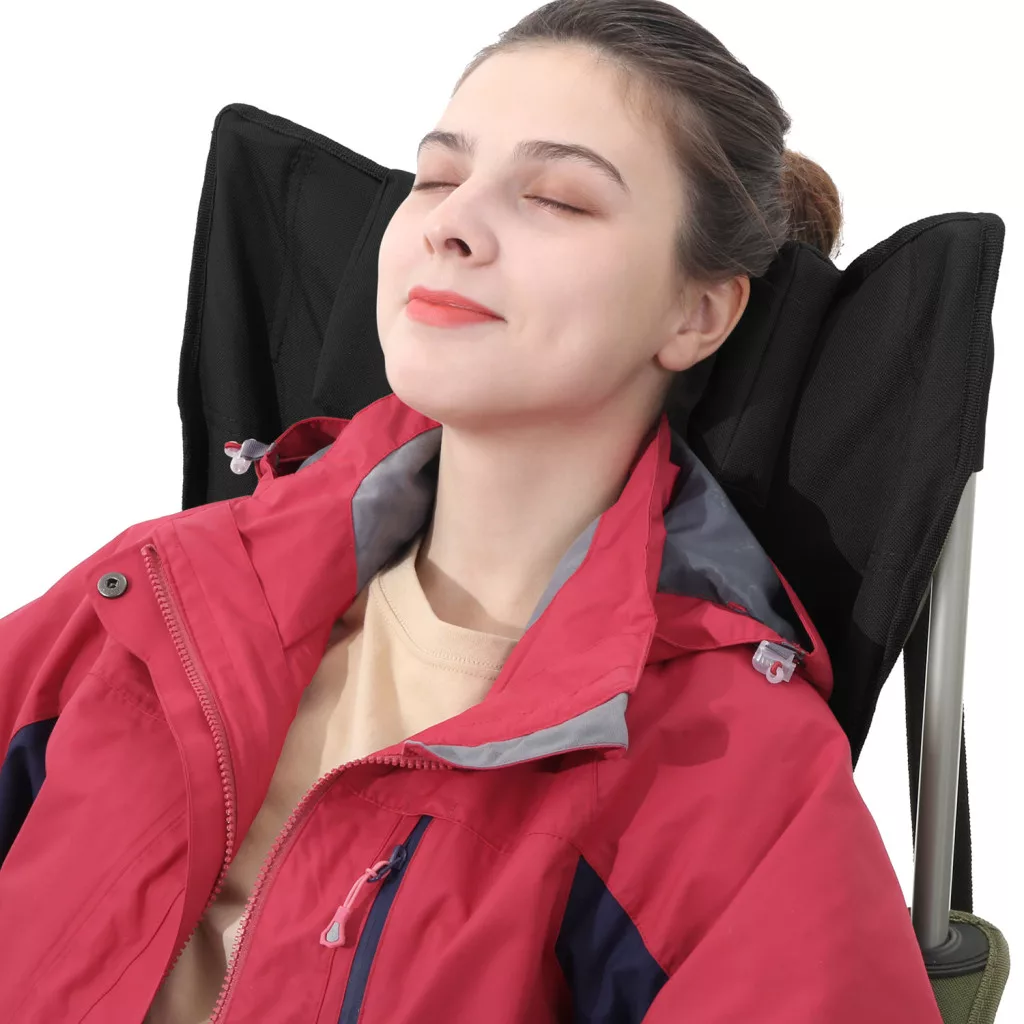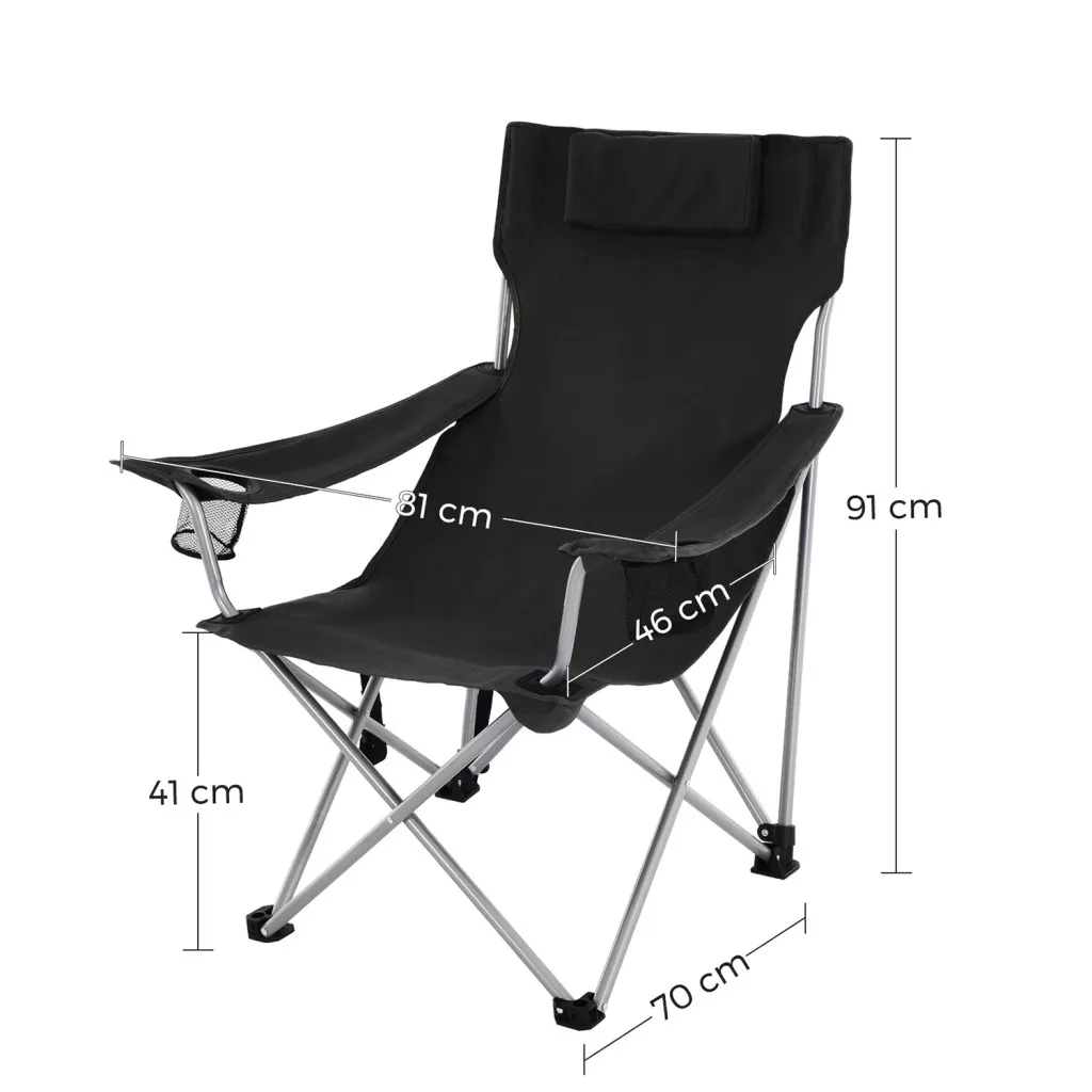 SONGMICS Összecsukható Kemping Szék Fejtámlával és Pohártartóval Fekete
