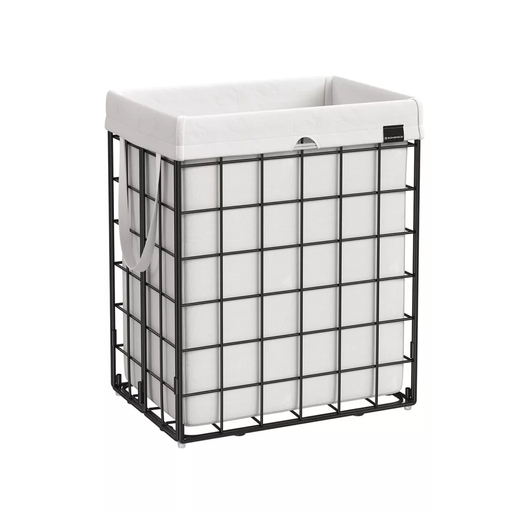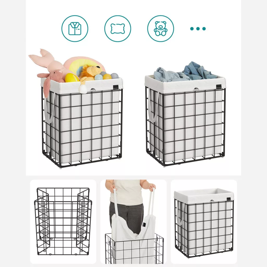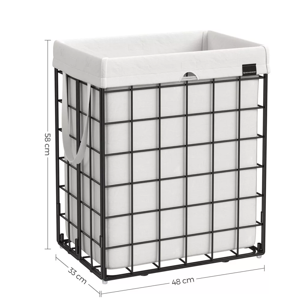 SONGMICS Összecsukható Szennyestartó Kosár Fémvázas 90L Fekete-Fehér