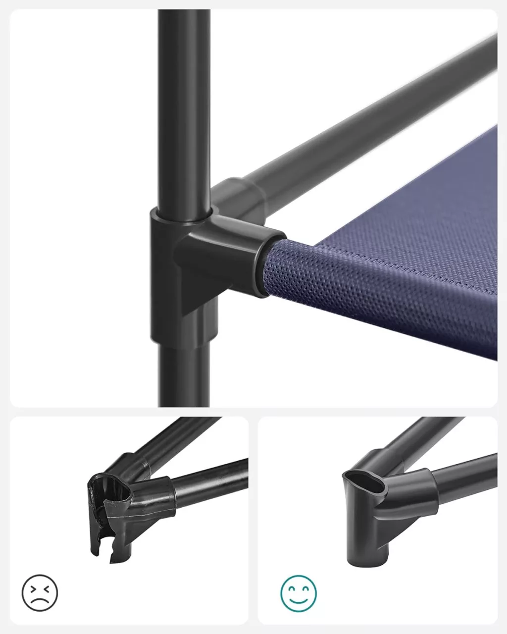 A cipzáras és tépőzáras védőborítás megóvja ruháit a portól, míg a könnyen összeszerelhető konstrukció szerszámok nélkül is egyszerűen összeállítható. A sötétkék szín elegáns megjelenést kölcsönöz bármely helyiségben.