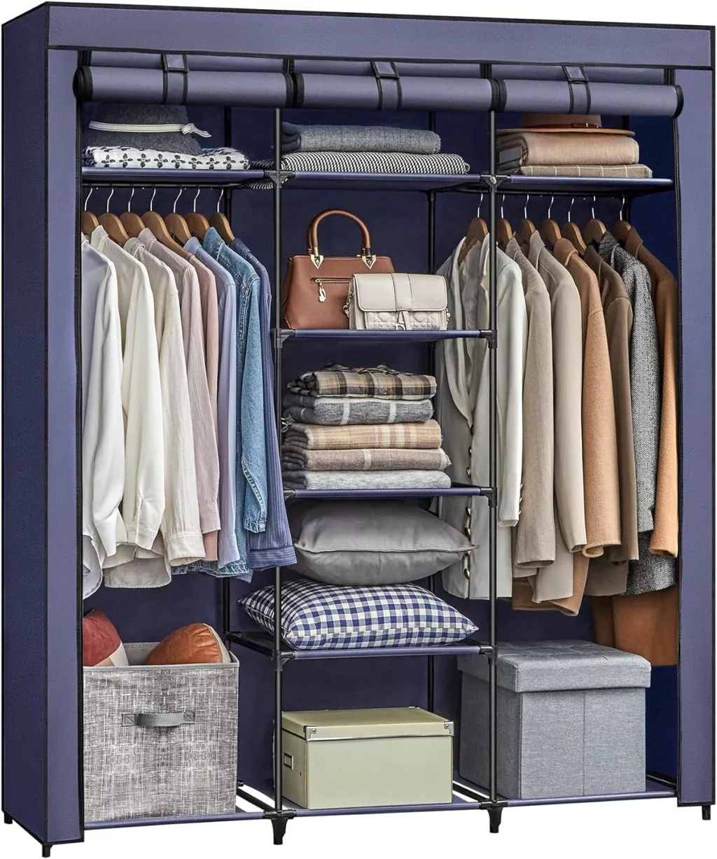 SONGMICS Összecsukható Szövet Ruhásszekrény Sötétkék Tárolórendszer