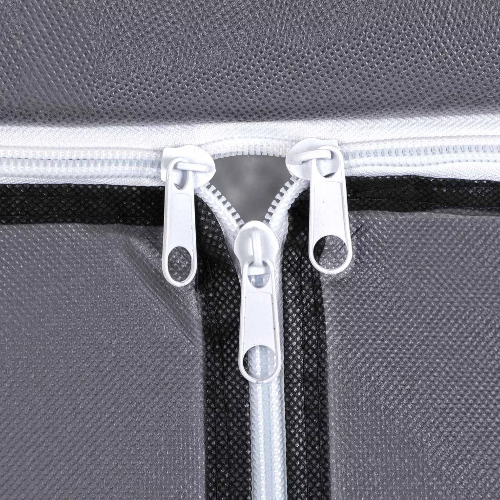 Ez a modern szövet ruhásszekrény tökéletes megoldást nyújt a korlátozott térrel rendelkező otthonokban. A strapabíró fémvázas szerkezet és a minőségi szövet borítás hosszú élettartamot biztosít, míg a cipzáras és tépőzáras kialakítás védi ruháit a portól.