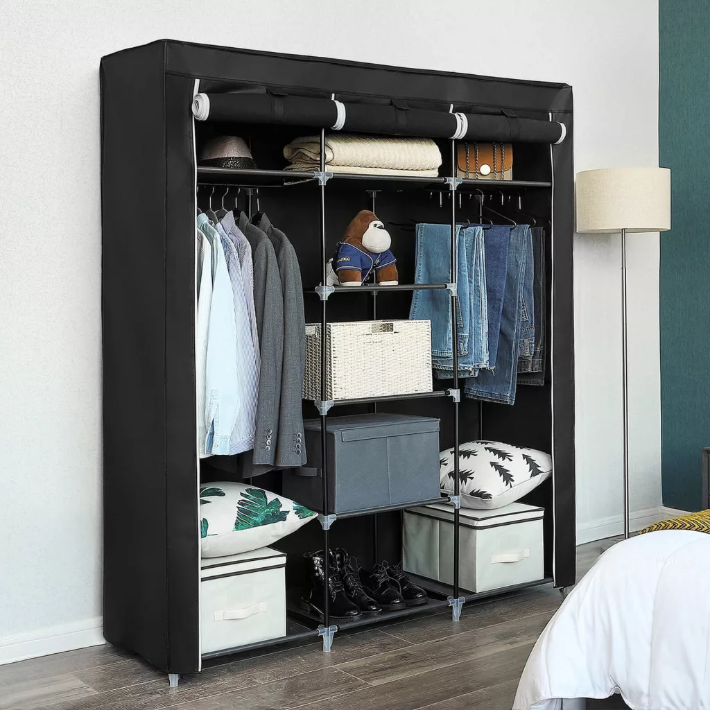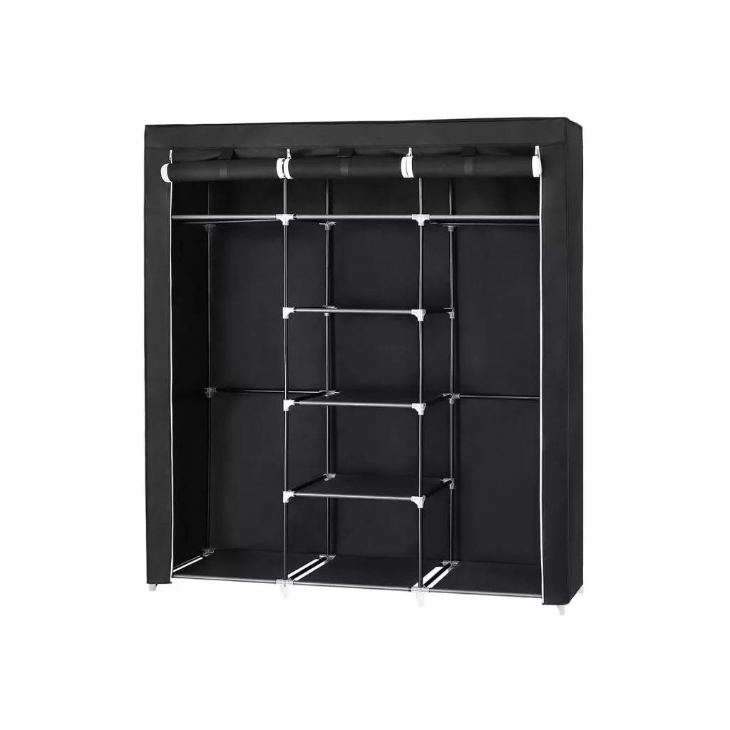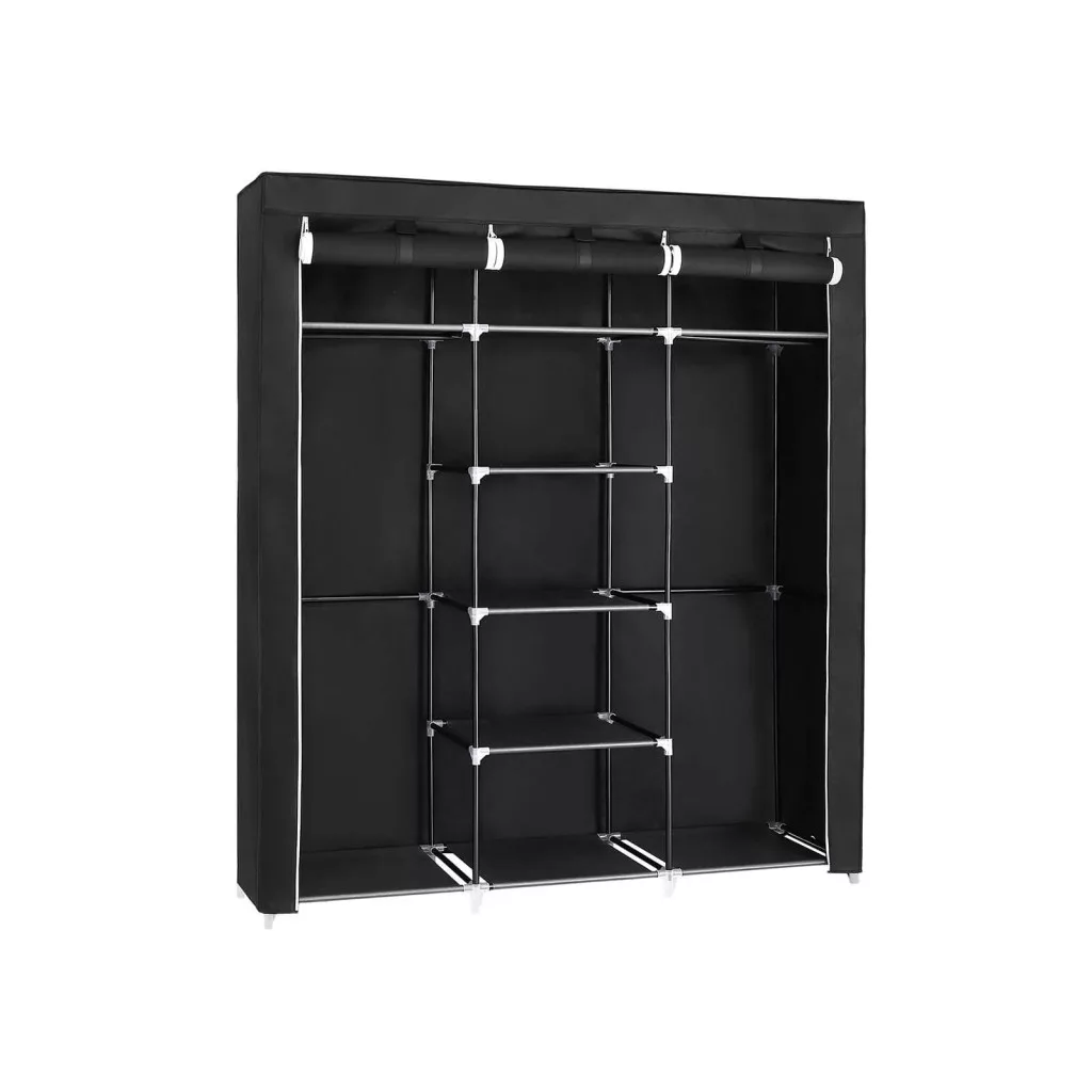 SONGMICS Összecsukható Szövetszekrény Dupla Ruhaakasztó Rúddal Fekete