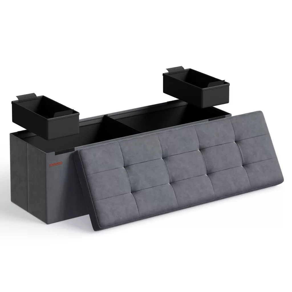 SONGMICS Összecsukható Tároló Ülőpad Bársony Palaszürke 110 cm