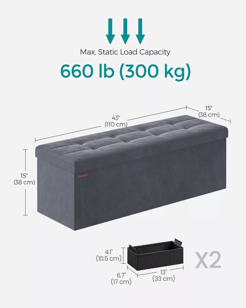 • Kivételes 300 kg teherbírás a vastag MDF paneleknek és fém sarokvédőknek köszönhetően, így akár többen is kényelmesen leülhetnek rá
