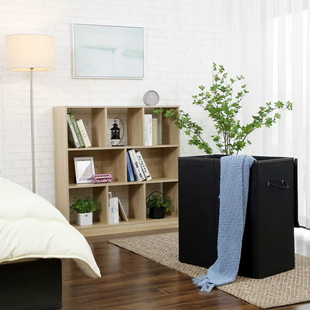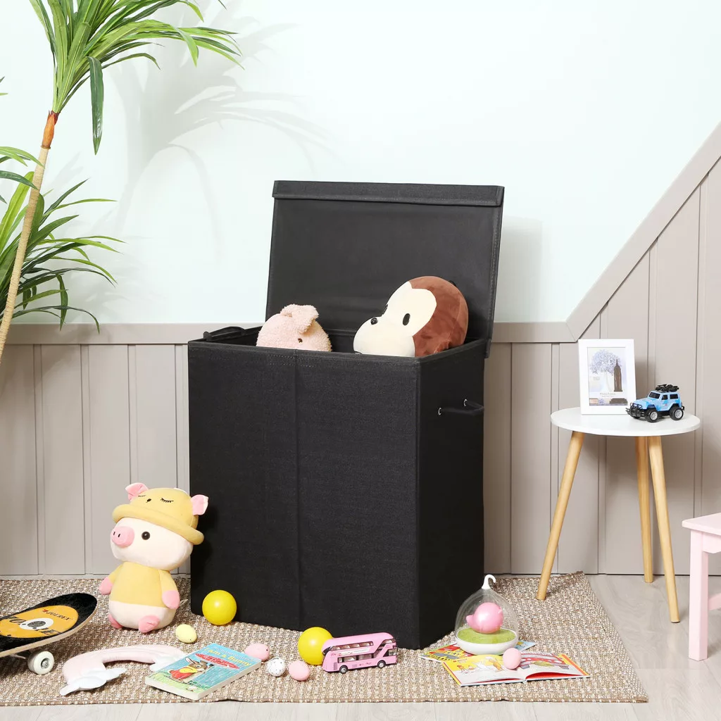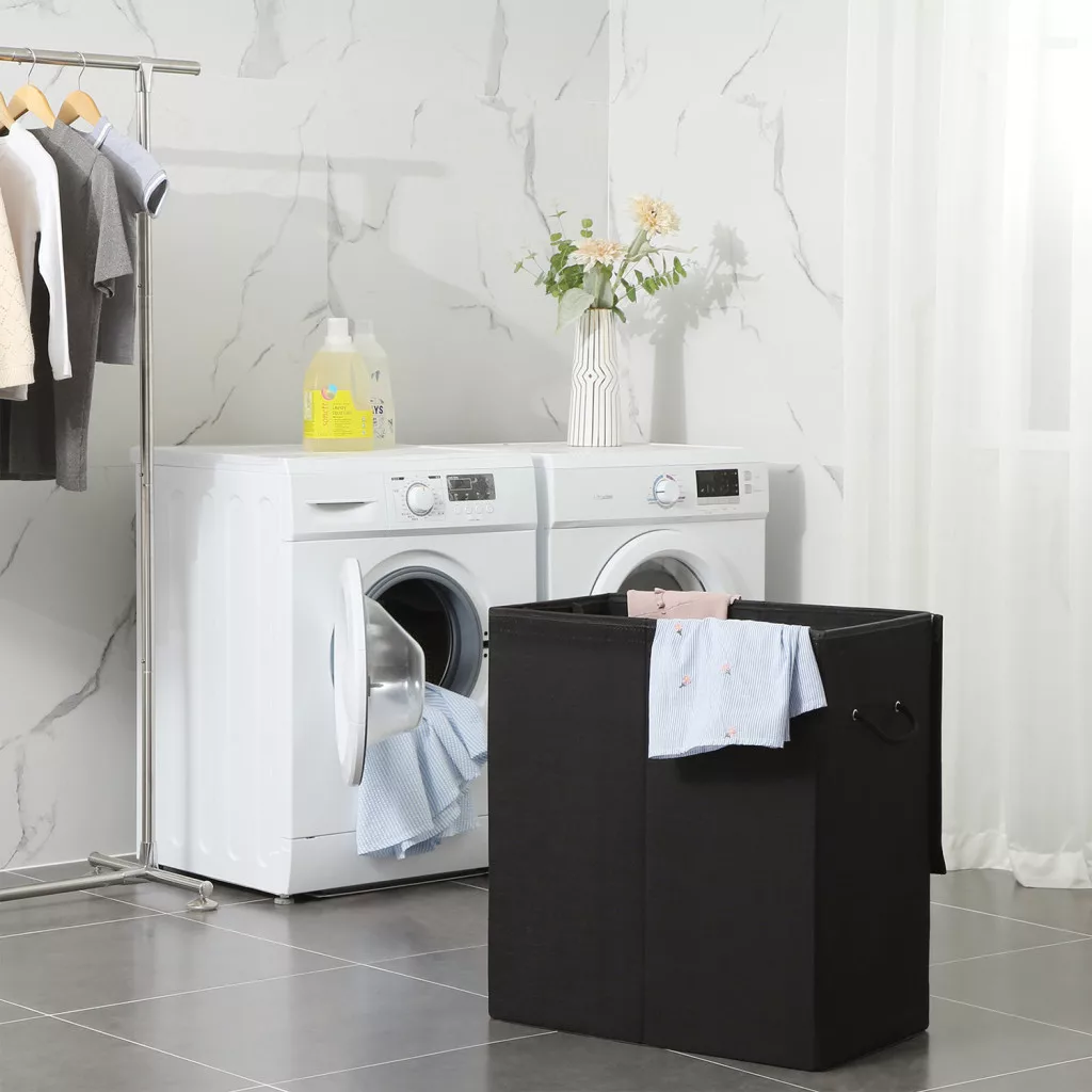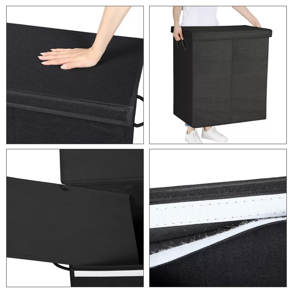 SONGMICS Osztott Szennyestartó Kosár Mágneses Fedéllel Fekete