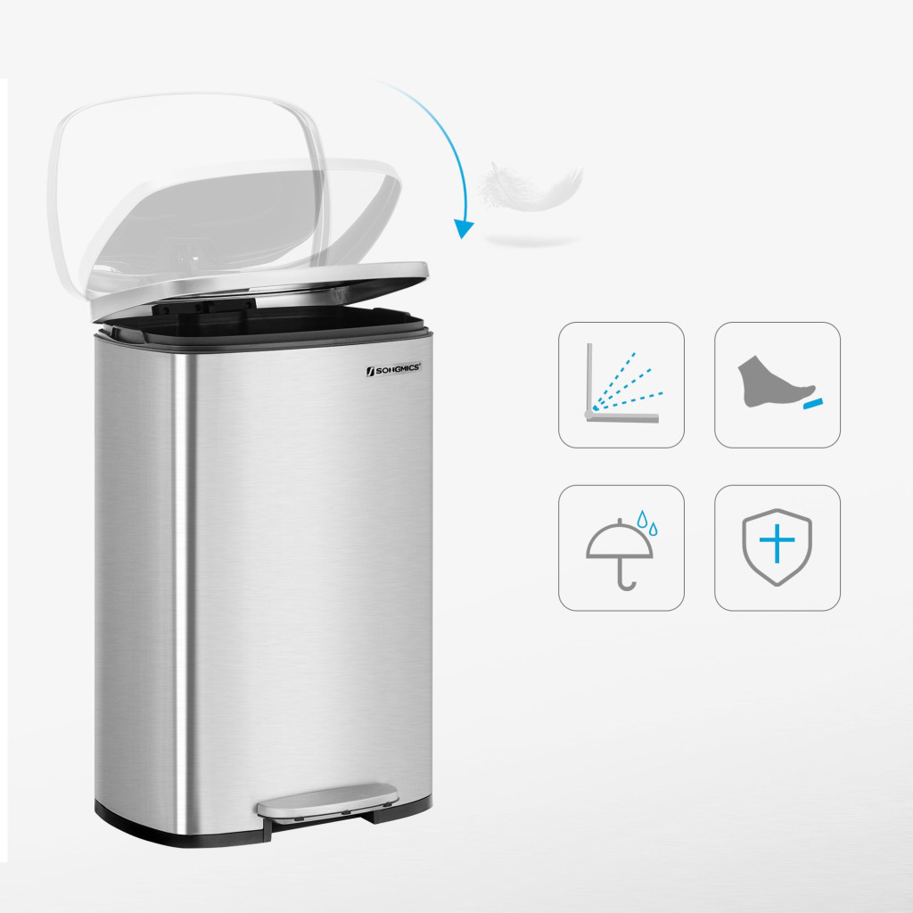 SONGMICS Premium 50L Pedálos Szemetes Rozsdamentes Acél Ezüst