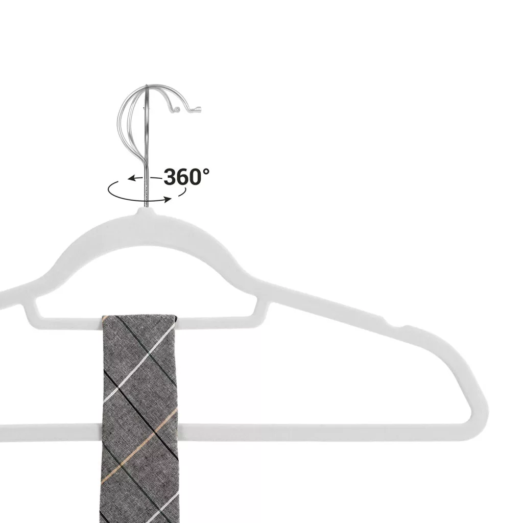Elegáns, helytakarékos 20 darabos bársony vállfa szett 360°-ban forgatható akasztóval és csúszásmentes felülettel, amely tökéletes megoldást nyújt ruhái biztonságos tárolására.
