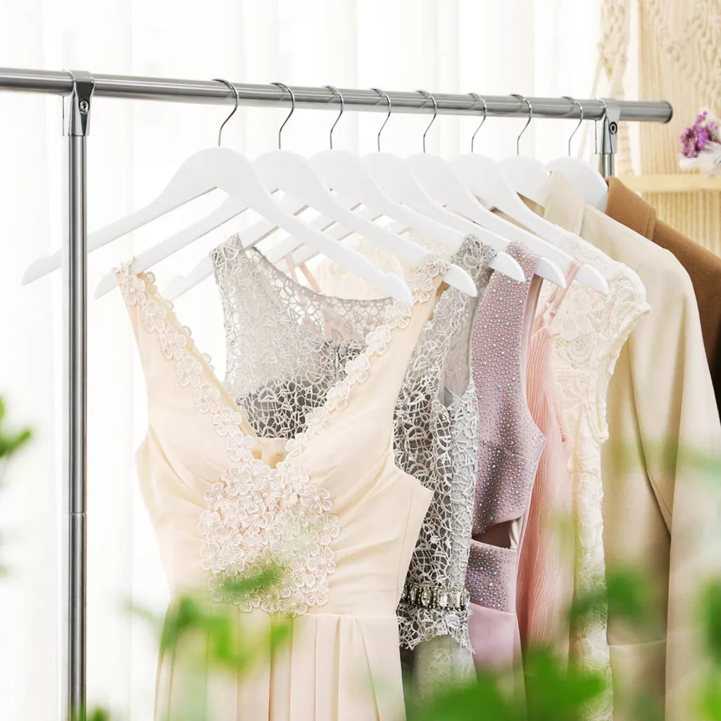 A SONGMICS prémium fa vállfa kollekció egyesíti a funkcionalitást és az eleganciát. A fehér, juharfából készült vállfák V-alakú bevágásokkal rendelkeznek a vállaknál, így hatékonyan megakadályozzák a ruhák lecsúszását. A sima, gondosan megmunkált felület kíméletesen óvja még a legfinomabb anyagokat is.