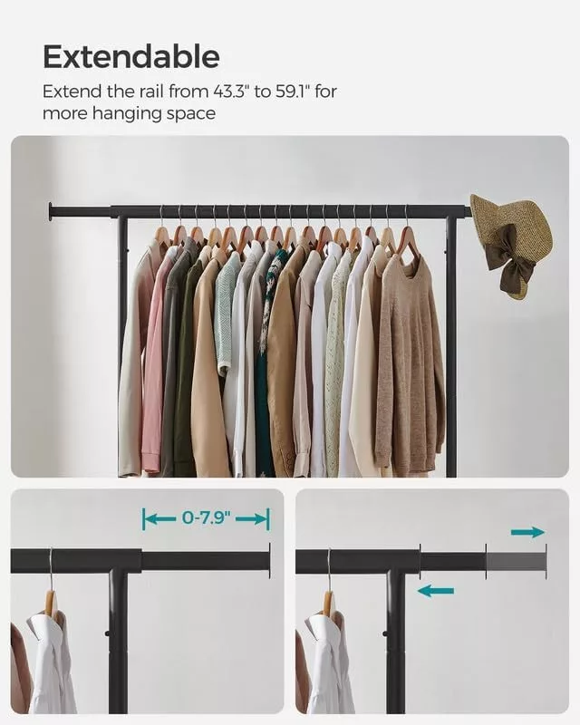 SONGMICS Prémium Gurulós Ruhaállvány Kihúzható Rúddal Matt Fekete