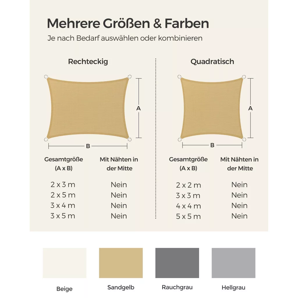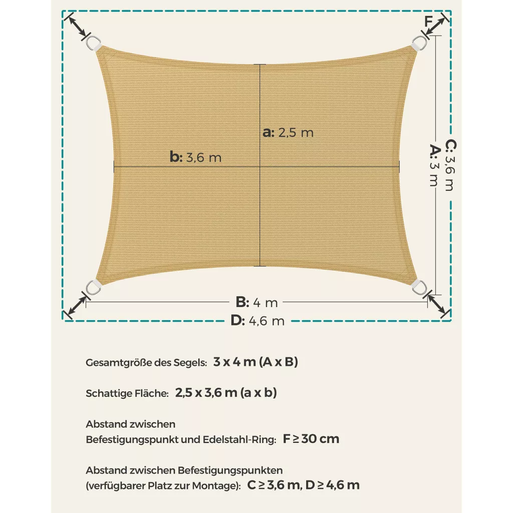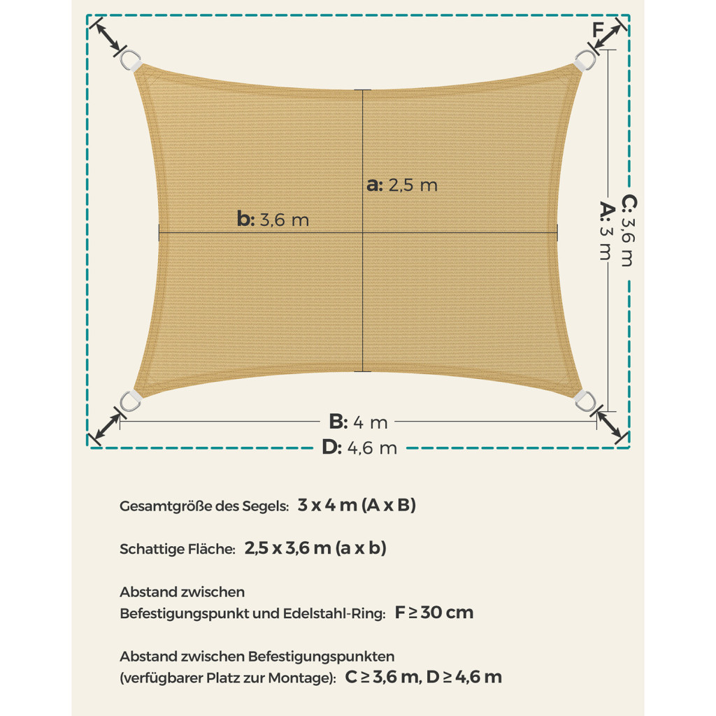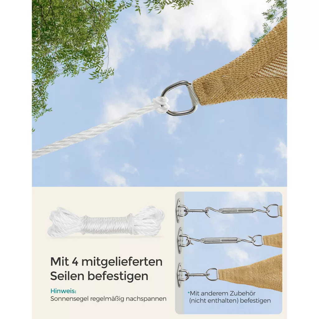 SONGMICS Prémium HDPE Napvitorla 3x4m Homokszín UV-védett Légáteresztő