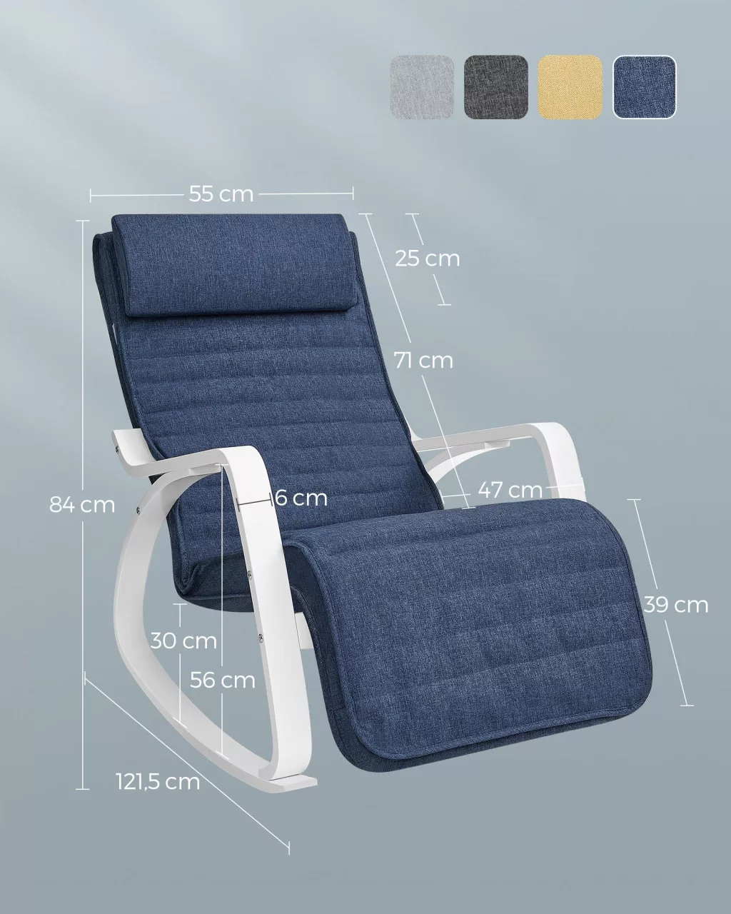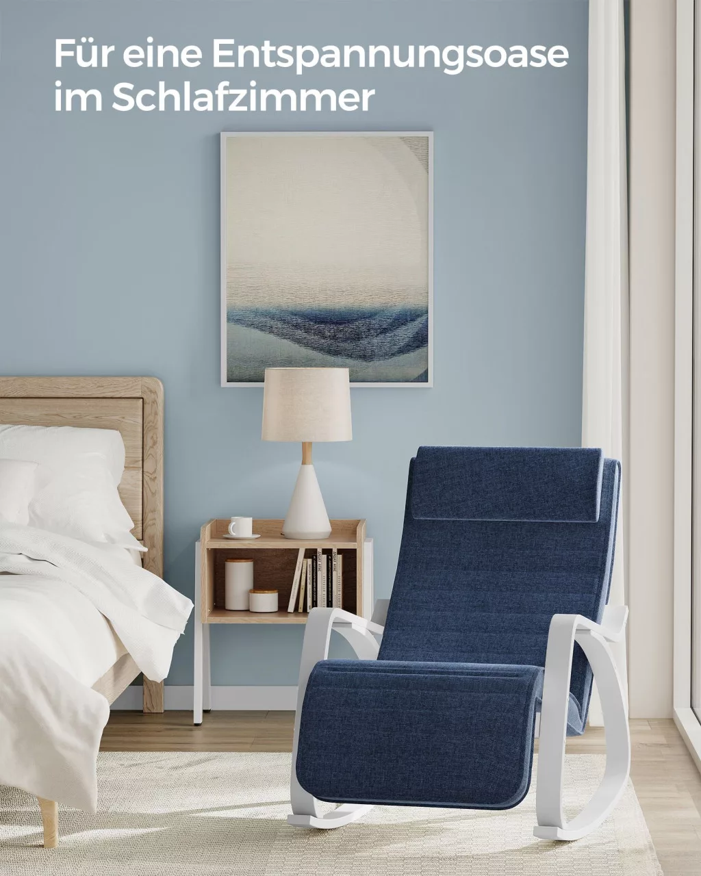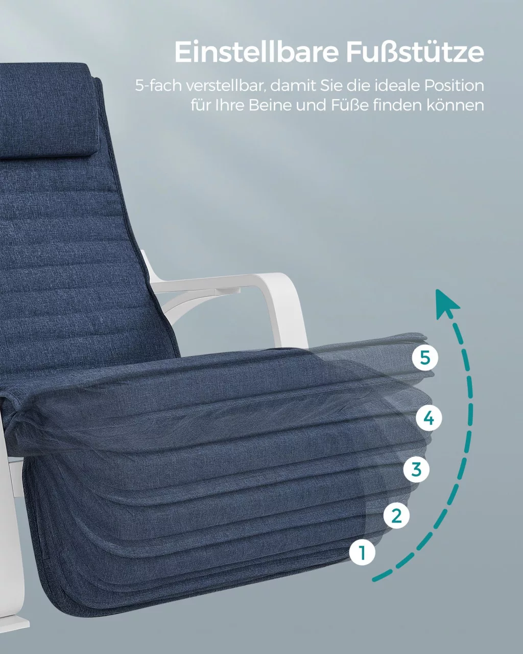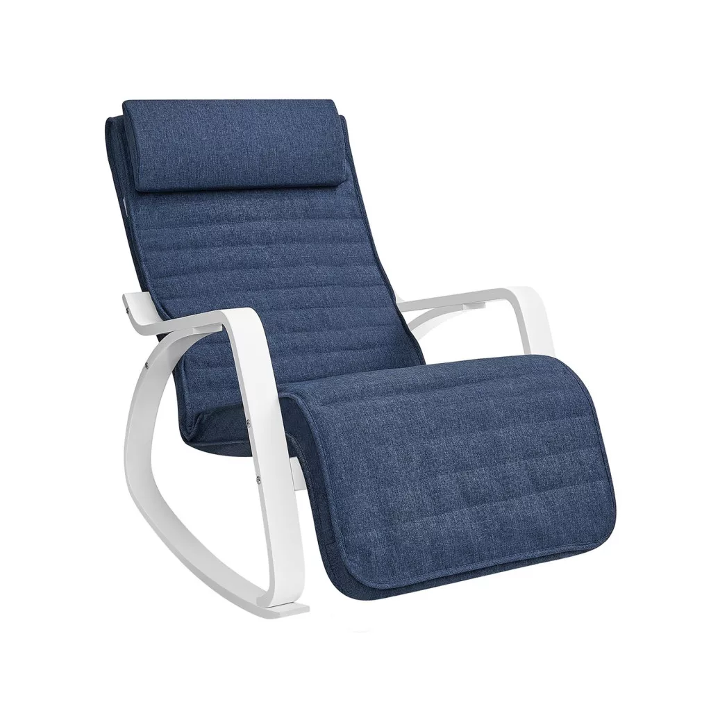 SONGMICS Prémium Hintaszék Nyírfa Karfával Éjkék-Fehér 5-fokozatú Lábtartóval