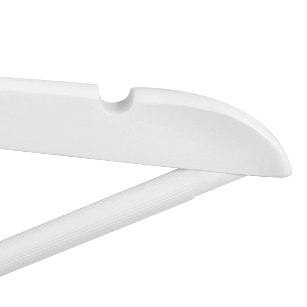 A csúszásgátló nadrártartó és a speciális váll-bevágások biztosítják, hogy minden ruhadarab stabilan a helyén maradjon. A krómozott, 360°-ban forgatható akasztó pedig maximális rugalmasságot biztosít a használat során.
