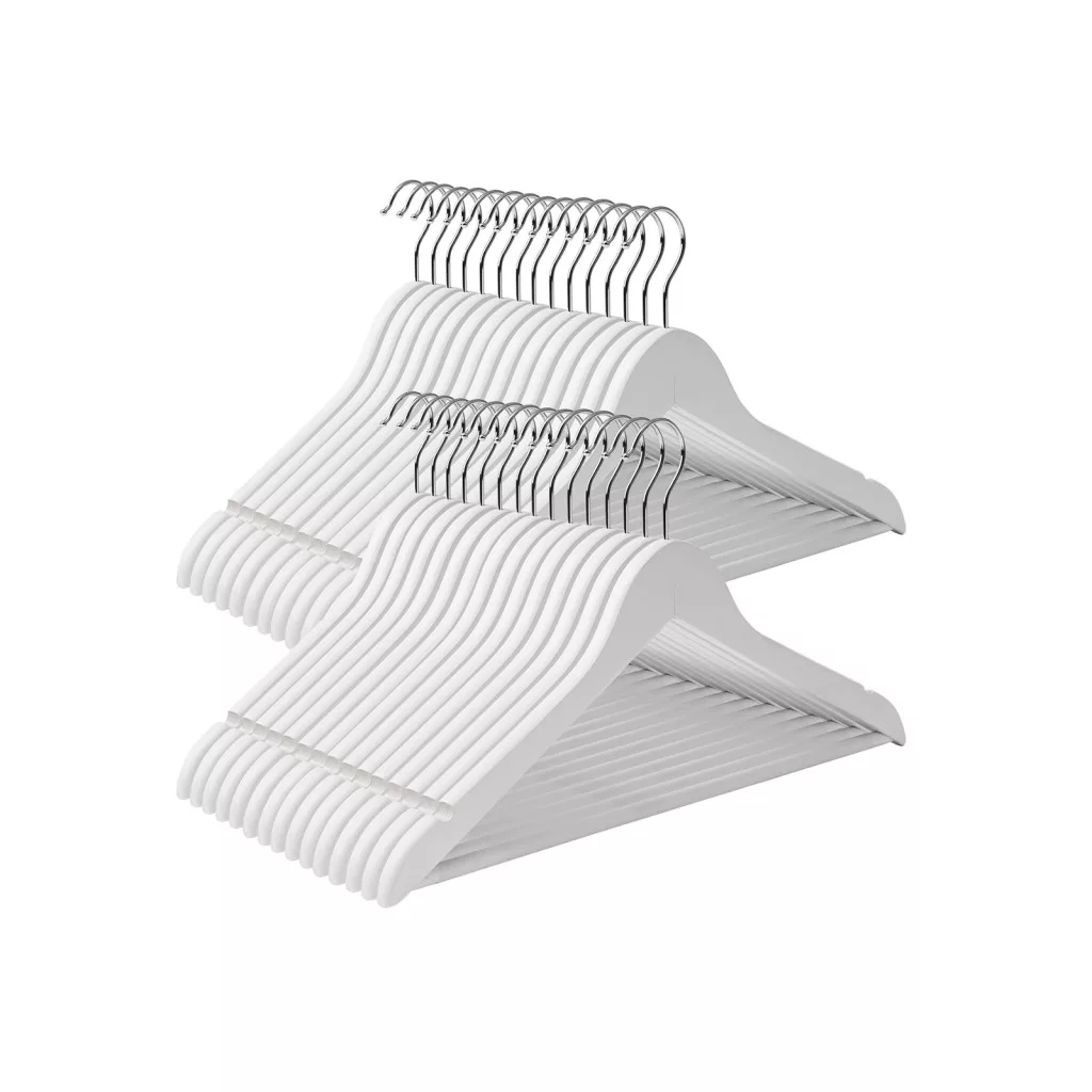 SONGMICS Prémium Juharfa Vállkiképzéses Ruhaakasztó Szett Fehér 30 db