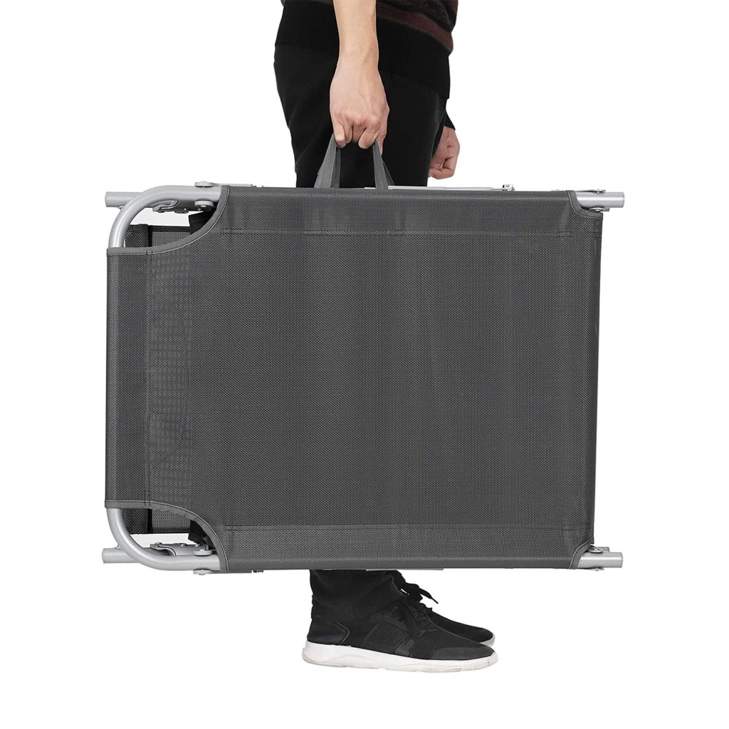 A praktikus kialakításnak köszönhetően könnyen összecsukható és a beépített fogantyúkkal egyszerűen szállítható. Ideális választás medence mellé, teraszra vagy akár a strandra is.