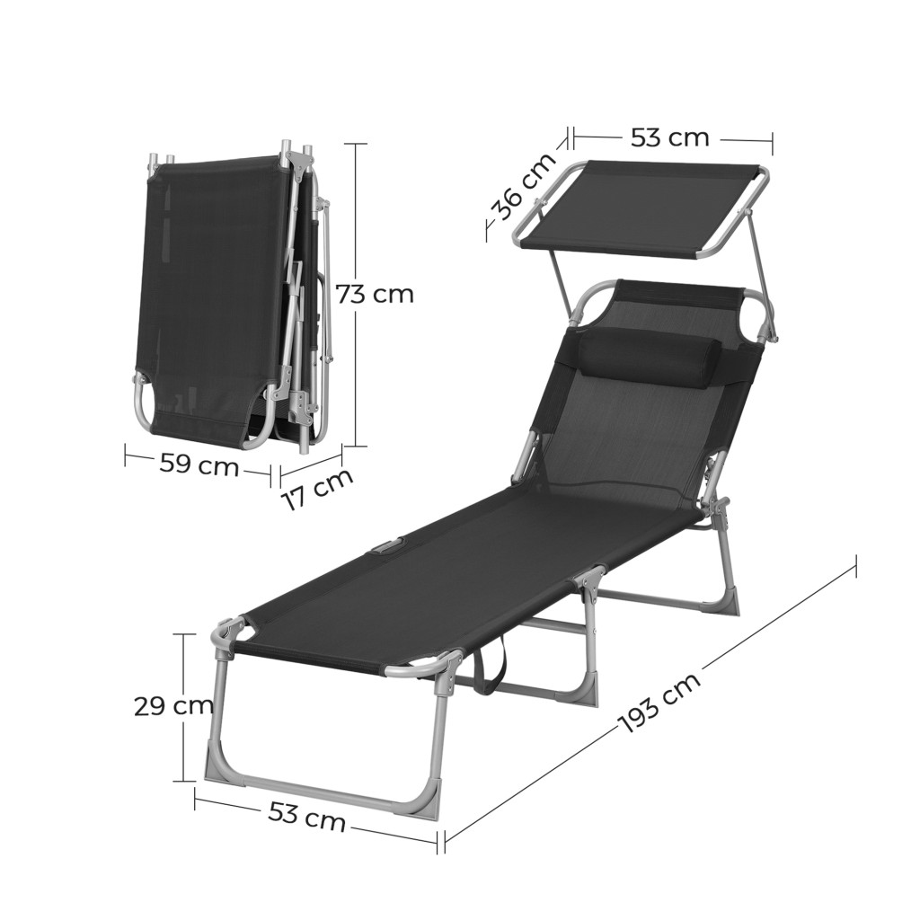 SONGMICS Prémium Napozóágy Árnyékolóval Fekete
