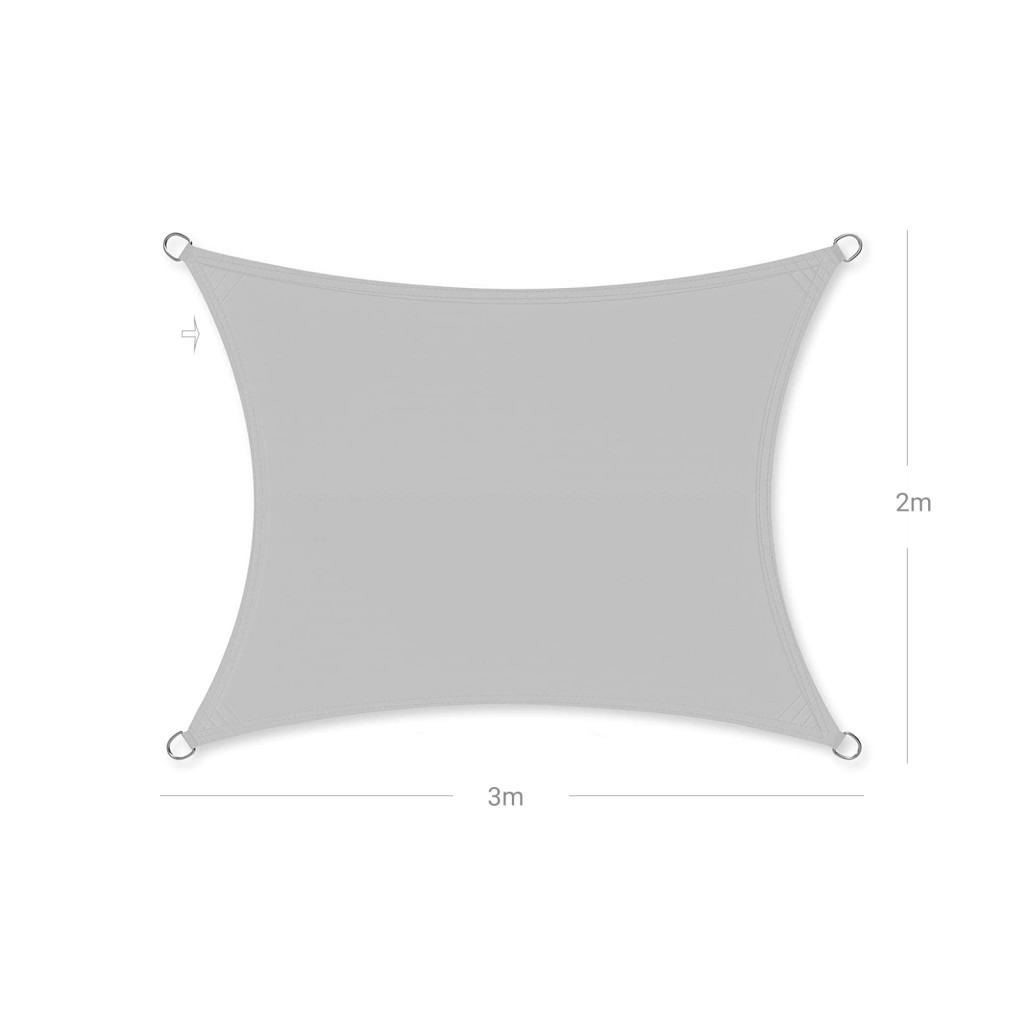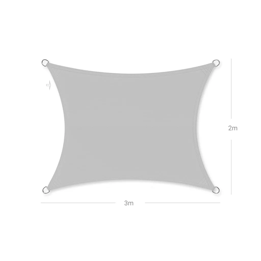 Ez a prémium minőségű 2x3 méteres napvitorla tökéletes megoldást nyújt a teraszok és kerti területek árnyékolására. A TÜV Rheinland által tesztelt anyag nem csak 93%-os UV-védelmet biztosít, de legalább 1000 mm-es vízállóságának köszönhetően a nyári záporoknak is ellenáll.