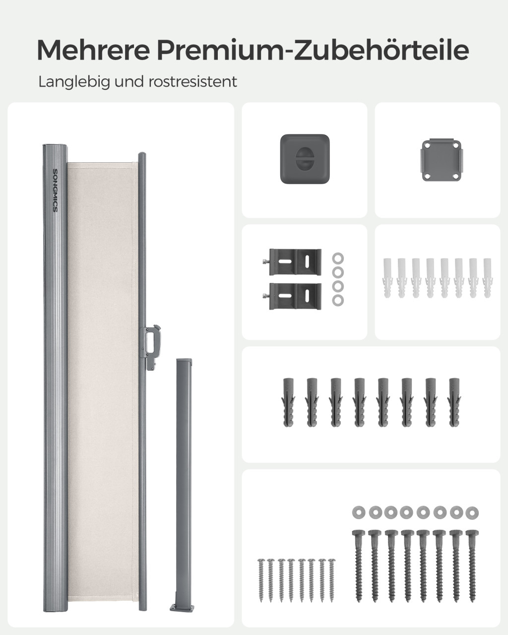 SONGMICS Prémium Oldalsó Napellenző 180x300 cm Bézs Teraszhoz TÜV Tanúsított