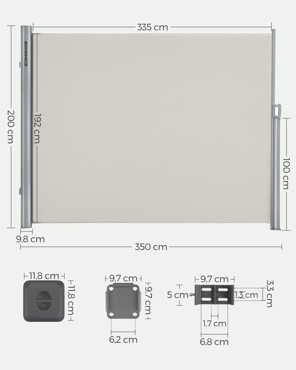 SONGMICS Prémium Oldalsó Napellenző 2x3,5m Bézs Alumínium