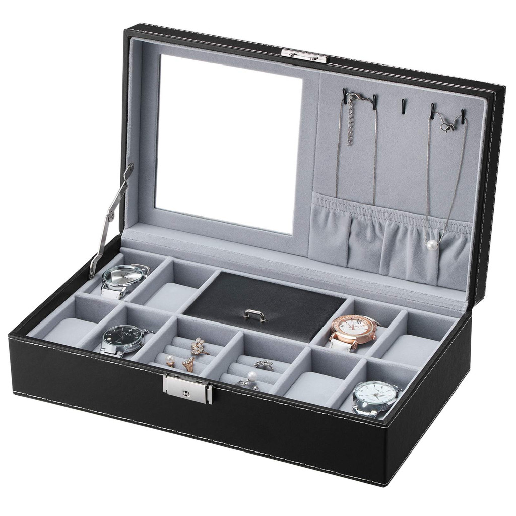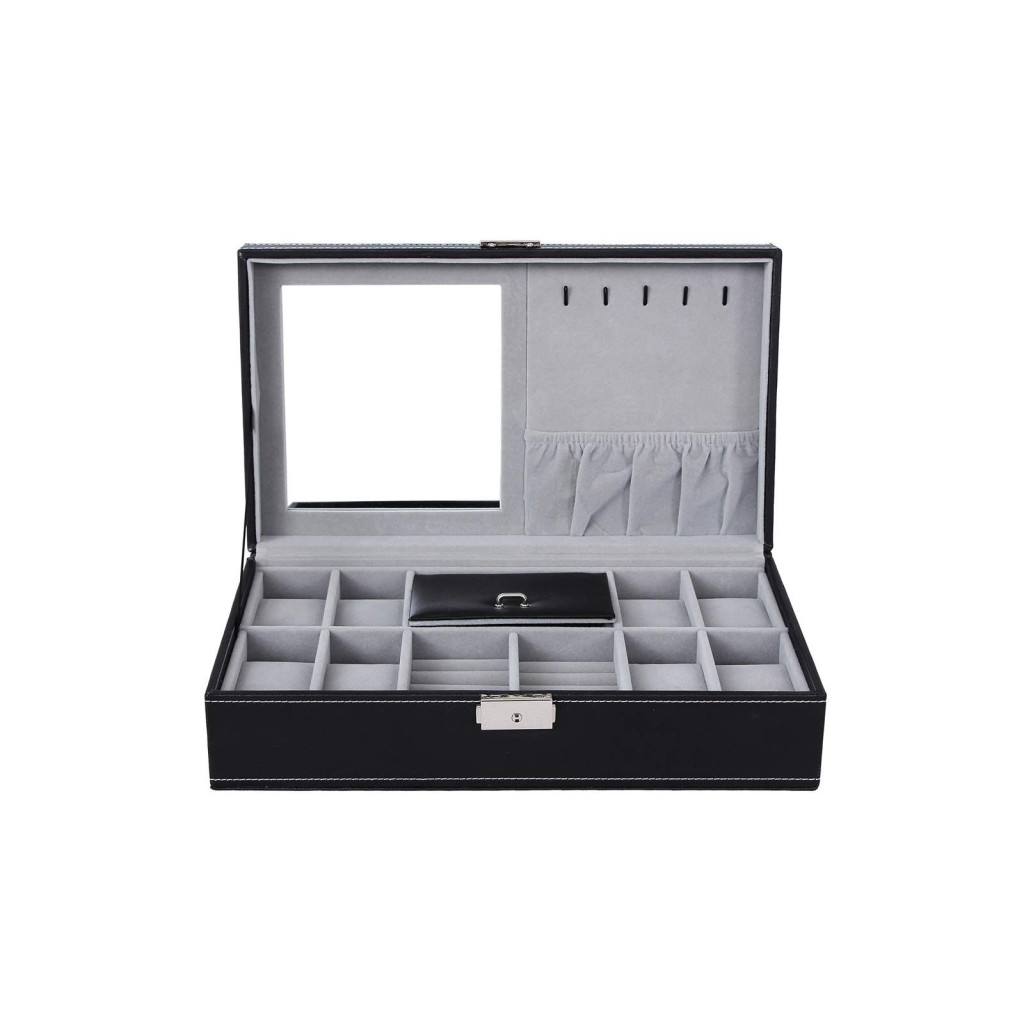 • Sokoldalú tárolási lehetőség 8 órának, gyűrűknek, láncoknak és mandzsettagomboknak