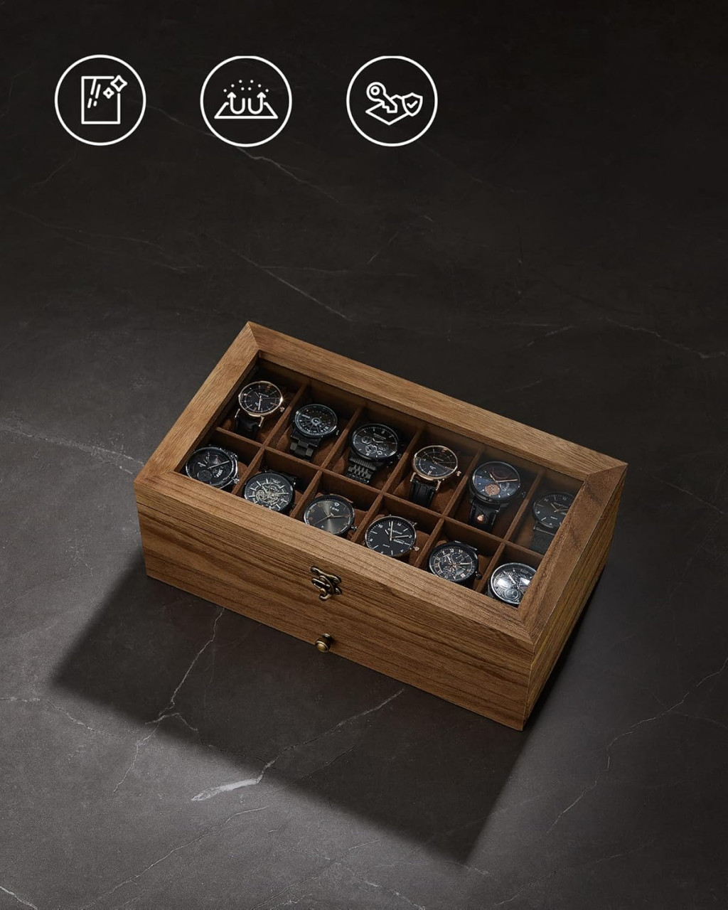 SONGMICS Prémium Óratartó Doboz 12 Rekesszel Diófa Kivitelben
