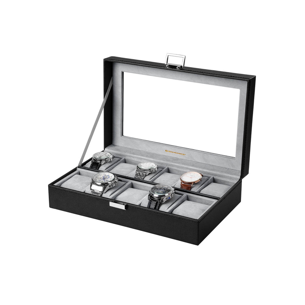 SONGMICS Prémium Óratartó Doboz Üvegfedéllel Fekete