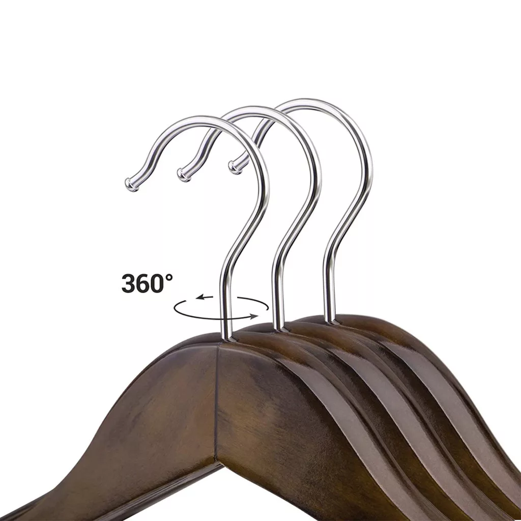 A SONGMICS prémium vállfakészlet sötét dió színű tömörfából készült, amely nem csak esztétikus megjelenést biztosít, de tartós és megbízható tárolási megoldást is nyújt értékes ruhadarabjainak. A széles, ívelt vállrész tökéletesen megtartja a kabátok és öltönyök eredeti formáját.
