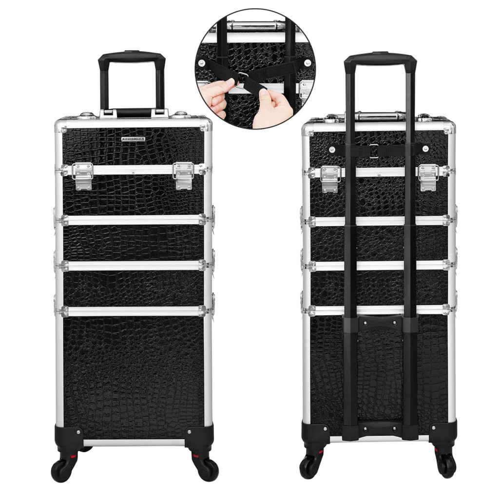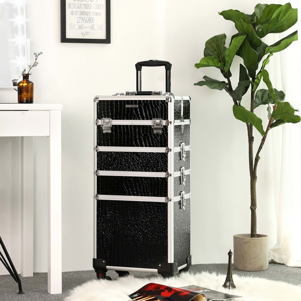 SONGMICS Professzionális 4-az-1-ben Sminkbőrönd Gurulós Kozmetikai Táska Fekete