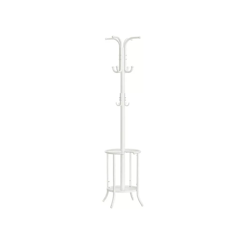 Elegáns és praktikus megoldás az előszoba rendszerezéséhez. Ez a 175 cm magas, gyöngyfehér fém fogas 12 kampóval és beépített esernyőtartóval biztosítja, hogy kabátjai, táskái és esernyői mindig rendezett helyen legyenek.