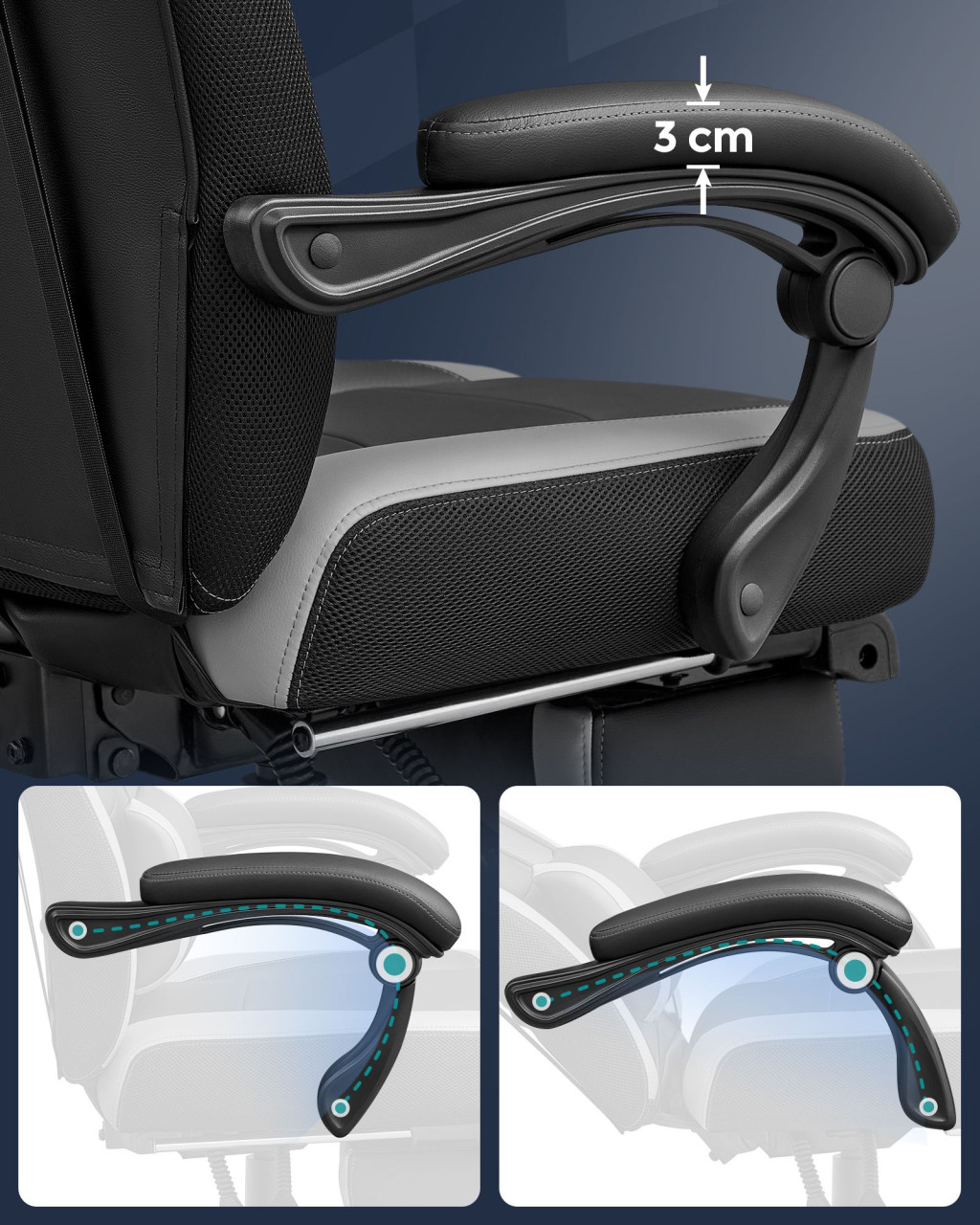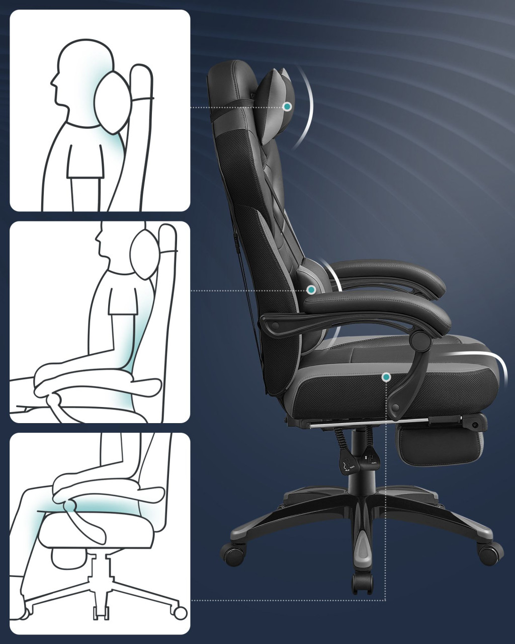 SONGMICS Racing Gamer Szék Lábtartóval Fekete-Szürke