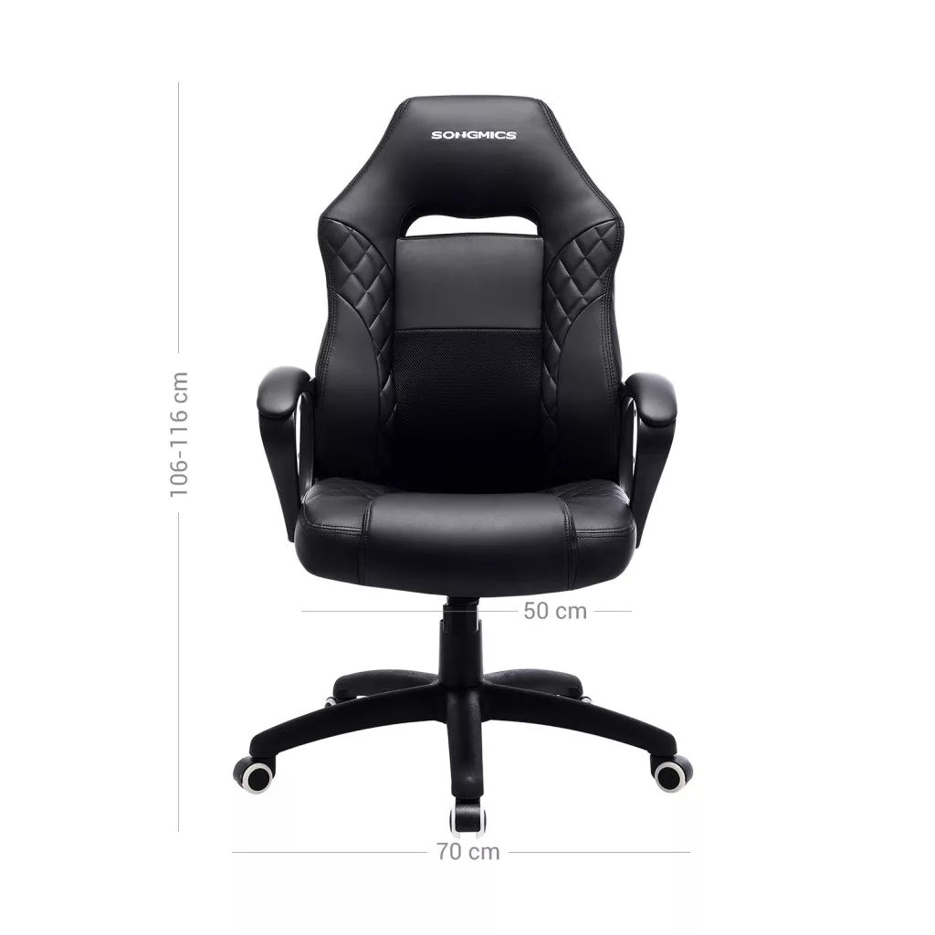 A SONGMICS gamer szék ötvözi a stílust és a funkcionalitást, kiváló minőségű PU bőr borítással és lélegző kialakítással. Az S-alakú háttámla és a magas sűrűségű szivacspárnázás tökéletes támaszt nyújt a gerincnek, míg a állítható magasság és a dönthető háttámla személyre szabható kényelmet biztosít.