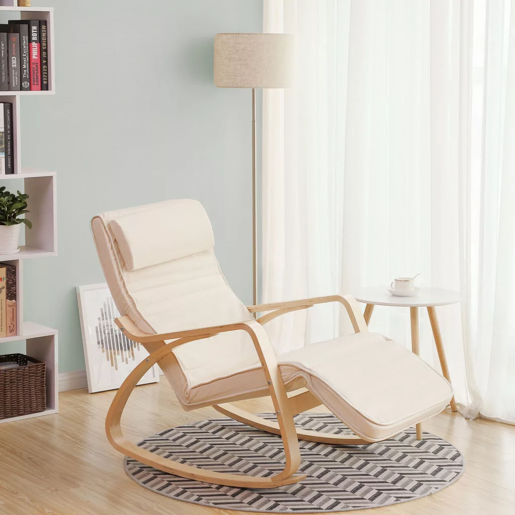 SONGMICS Relax Hintaszék Állítható Lábtartóval Nyírfa Bézs