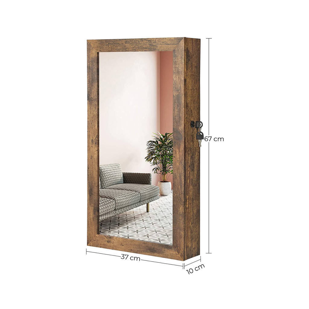 SONGMICS Rusztikus Barna Fali Ékszertartó Szekrény Tükörrel